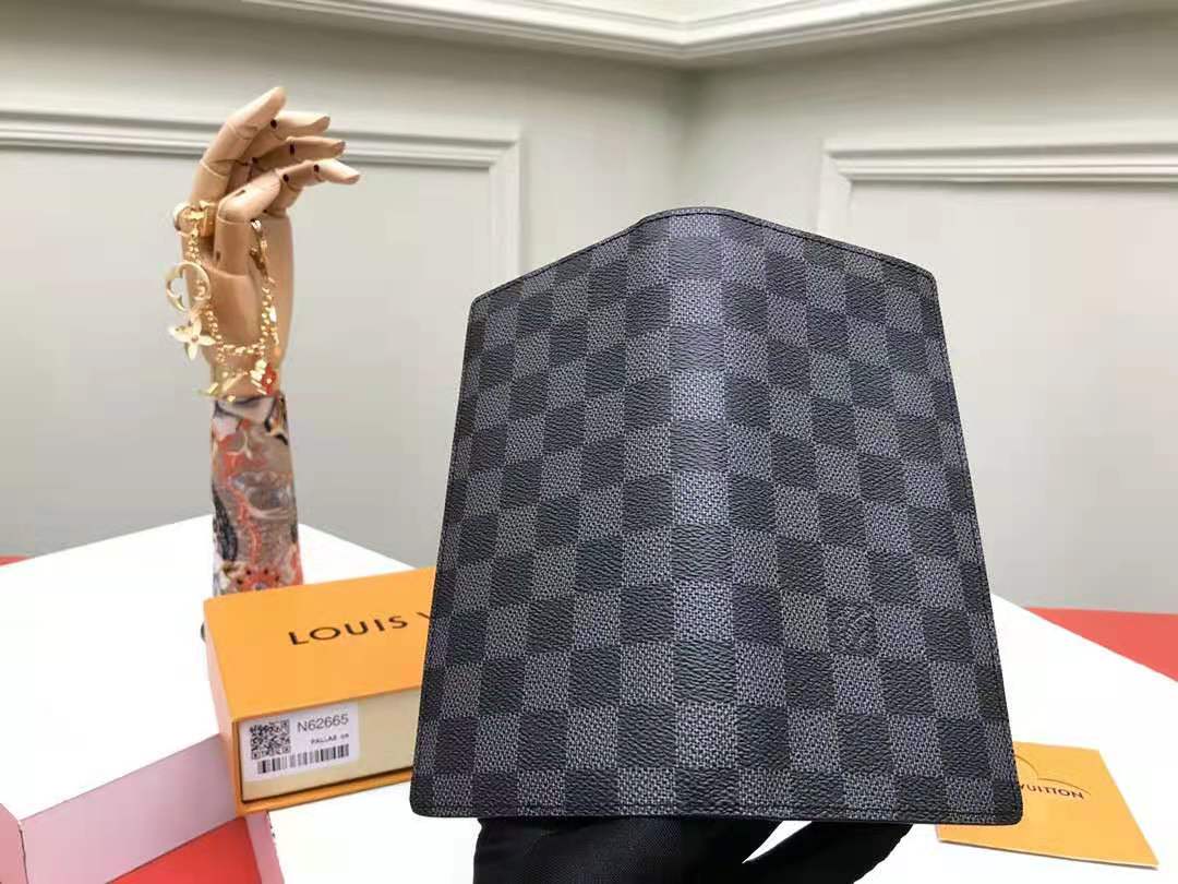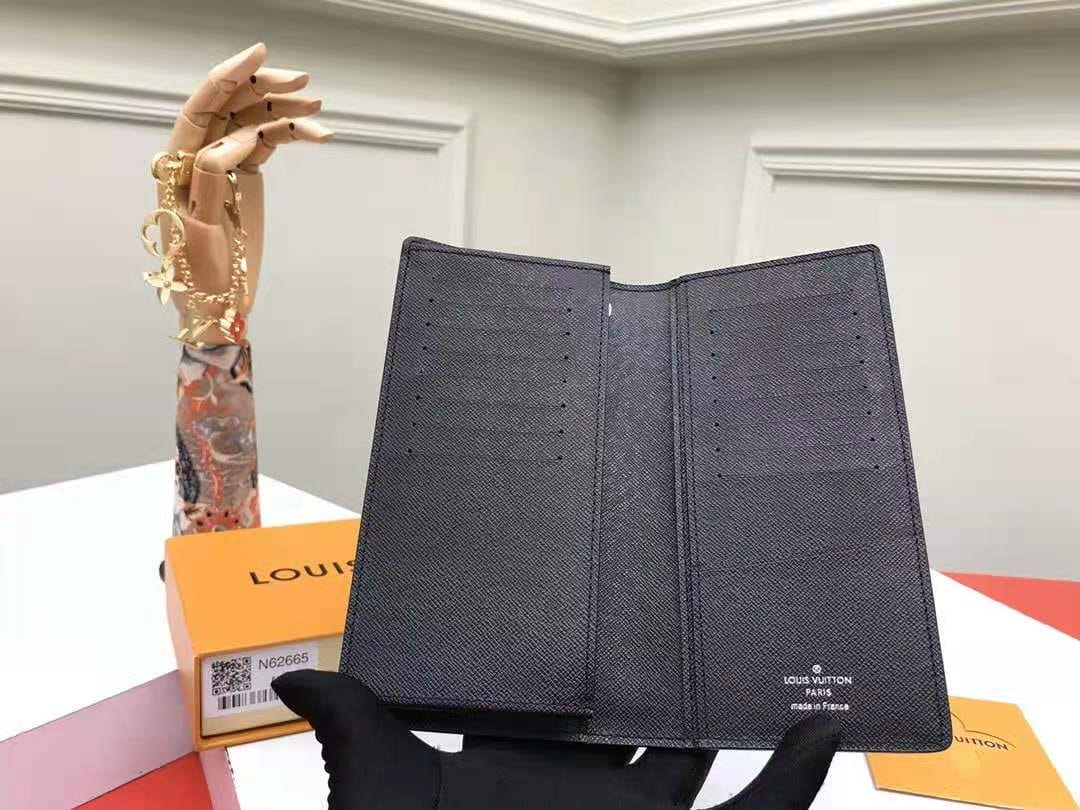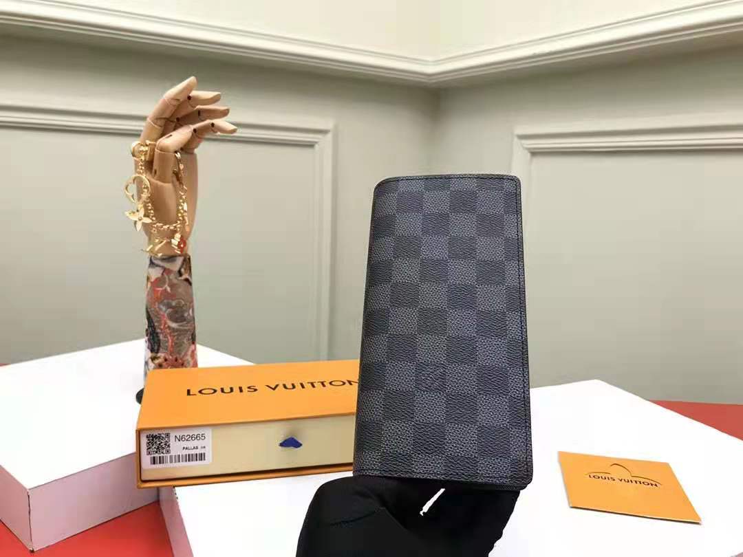 N62665黑格??这款皮夹是为了纪念居住于非洲的探险家Pierre Savorgnan de Brazza而制,采用DamierGraphite帆布制造,设计实用,男性化,极具都会风格。可轻易放入上衣口袋尺寸19x10cm,包装:配包装盒,??
