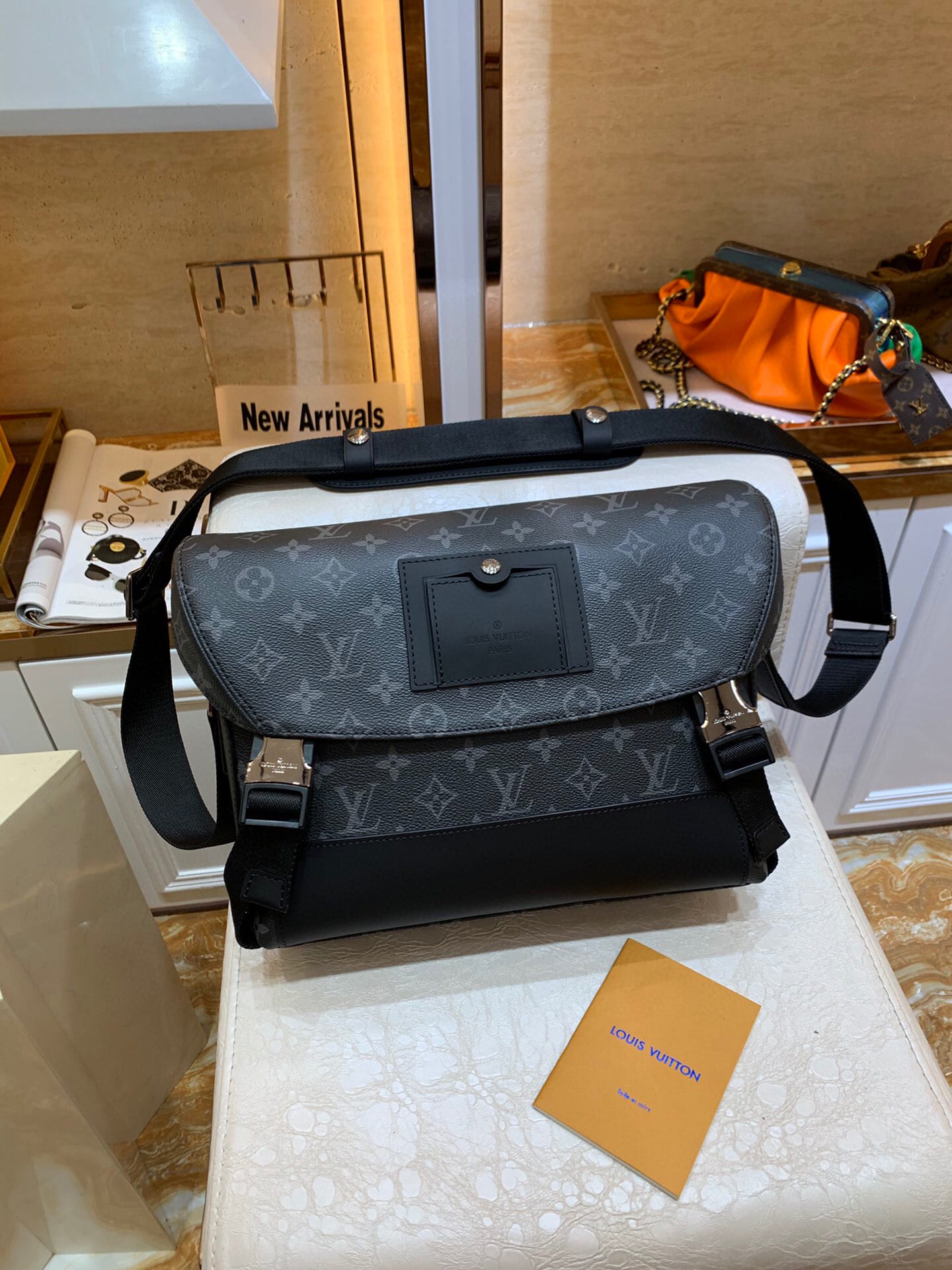 此款Messenger PM Voyager小号邮差包采用柔软的????Monogram Eclipse帆布材质??升级全钢五金 ??采用进口沙菲油线 ? 提携十分舒适??