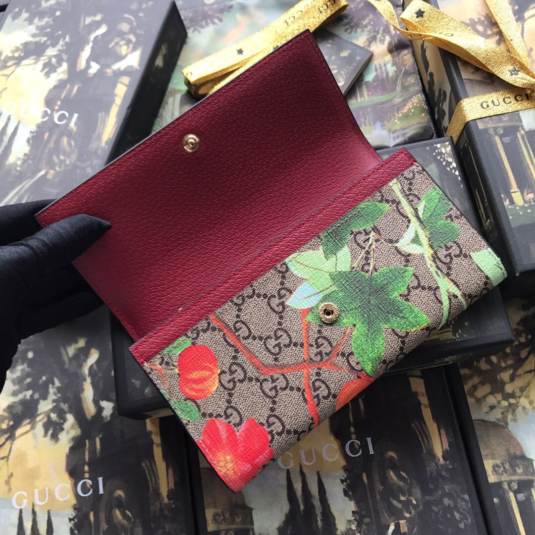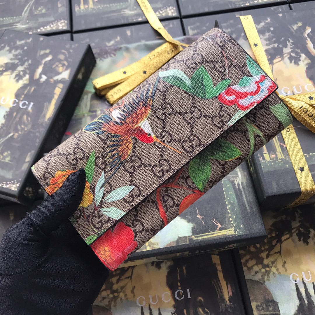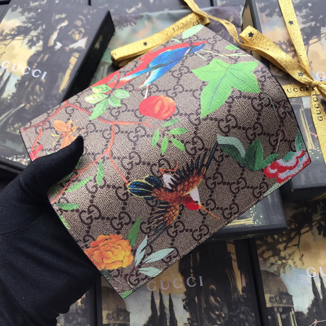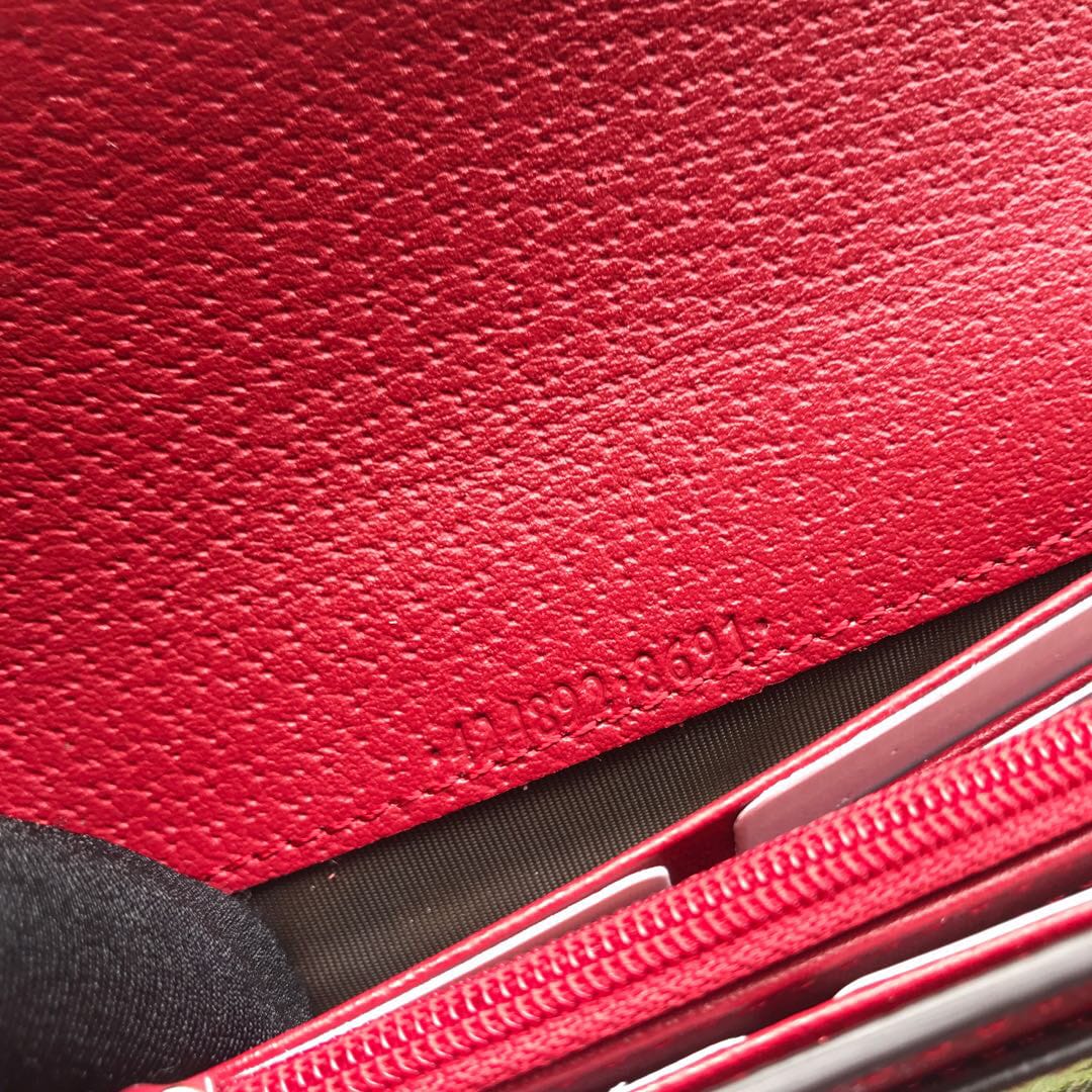 ?高端品质???GG SuPreme Tian乌木色图案印花,采用环保工艺制作而成,配以大红皮质滚边,原版品质、实物拍摄!尺寸:19宽x10高x2cm。配专柜全新包装型号:424892啡小鸟红皮。ADN