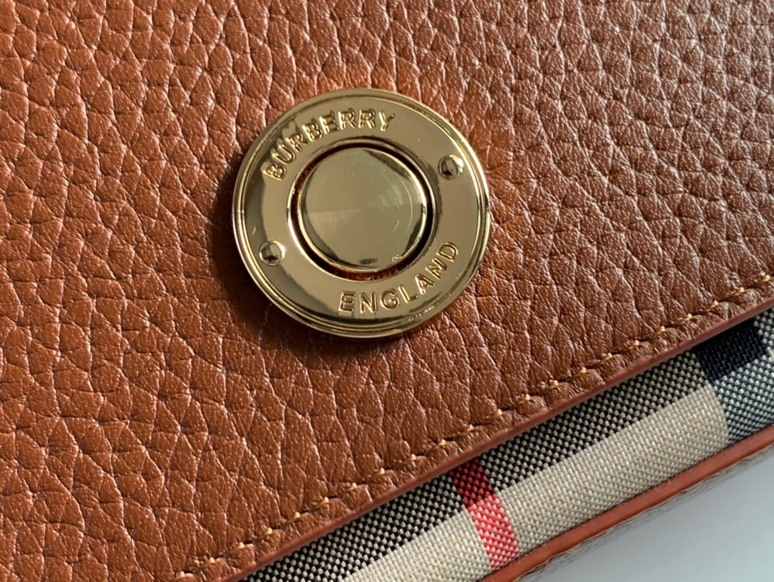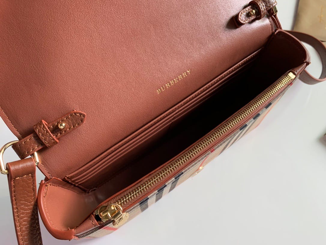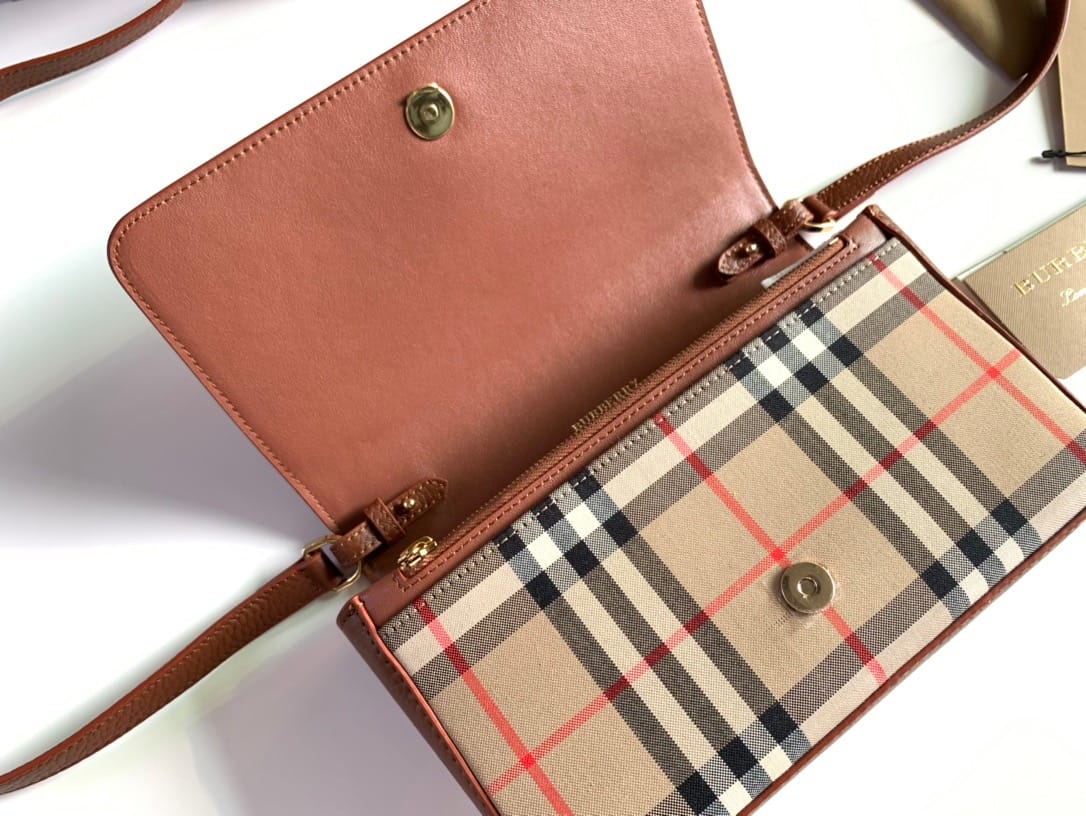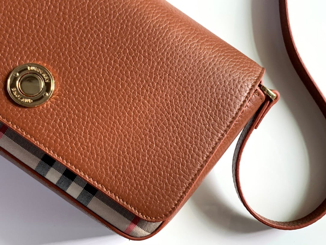 【Burberry?柏宝利】? Vintage 格纹拼皮革小号斜背包 精巧的斜背包,选用意大利鞣制粒纹皮革与典藏 Vintage 复古格纹裁片打造。可单肩背、斜背,或缔造手拿包造型。?专柜品质!做工精细?实物拍摄?,??80251611棕色,尺寸: 21 x 12.5 x 4.5cm