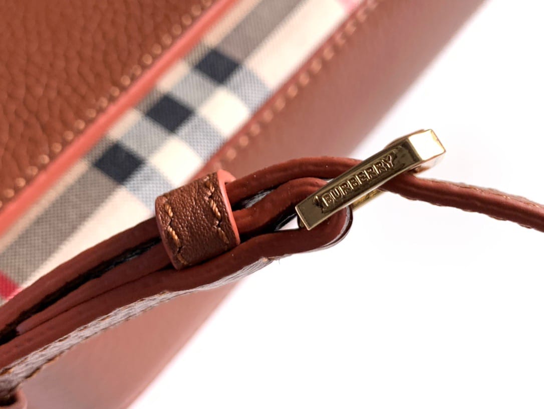 【Burberry?柏宝利】? Vintage 格纹拼皮革小