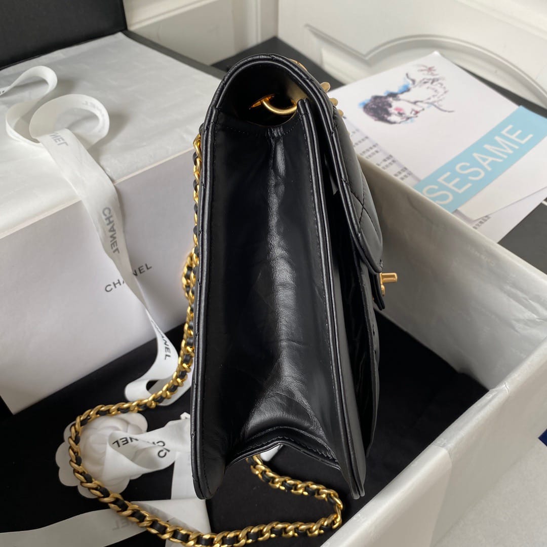 现货23S 复古邮差口盖包/AS3932 豆腐包 被这款包惊艳到了?饰以粗金链条手提搭配 金色复古五金 复古的小牛皮纹 复古感直接拉满?? 中古设计感十足 满满香香灵魂 ~nice ??五金:全铜???复古金 皮料:原厂复古牛皮 尺寸:18.5*22*7.5cm