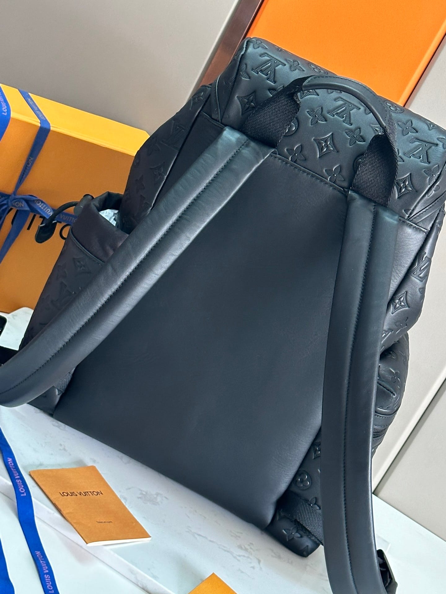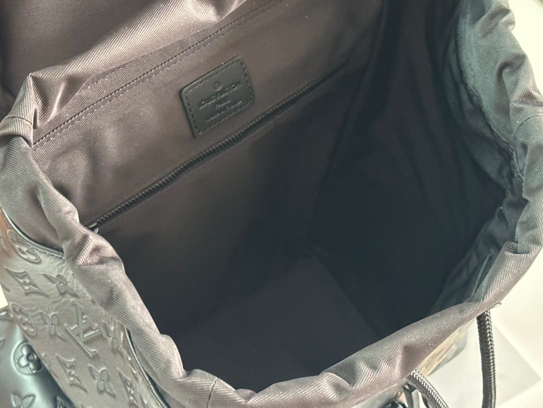(此款太大配不了包装) ??原单?新款M43680 此款Discovery双肩包由质地柔软并饰有精致压纹的Monogram Shadow小牛皮裁制而成,风格动感。来自2018秋季季前展示系列男装设计,此款Discovery双肩包配有外袋,便于取物,钩眼扣抽绳开合牢靠安全。配有舒适的皮质背带与顶部手柄,便于手提与肩背。