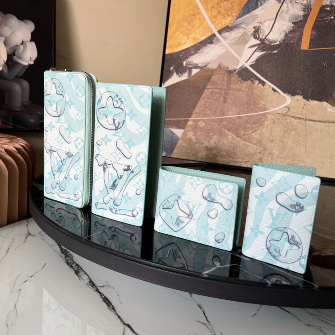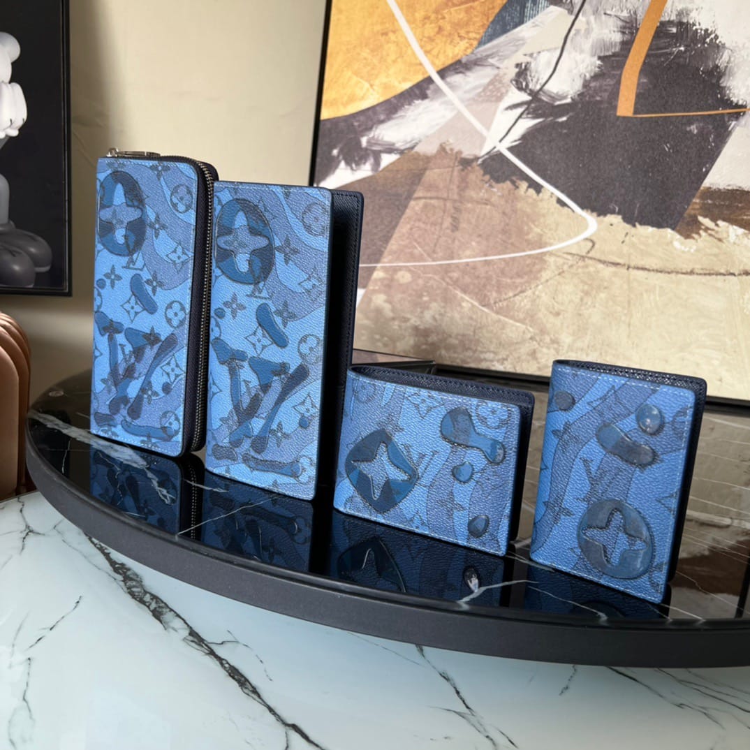 顶级原单 M82306蓝色 這款Brazza錢包以Monogram Aquagarden塗層帆布精製,綴以全新的Monogram圖案設計。帆布飾有Monogram圖案和波浪形海草印花,表面則另有一層水滴狀的立體Monogram花卉圖案和LV標誌。