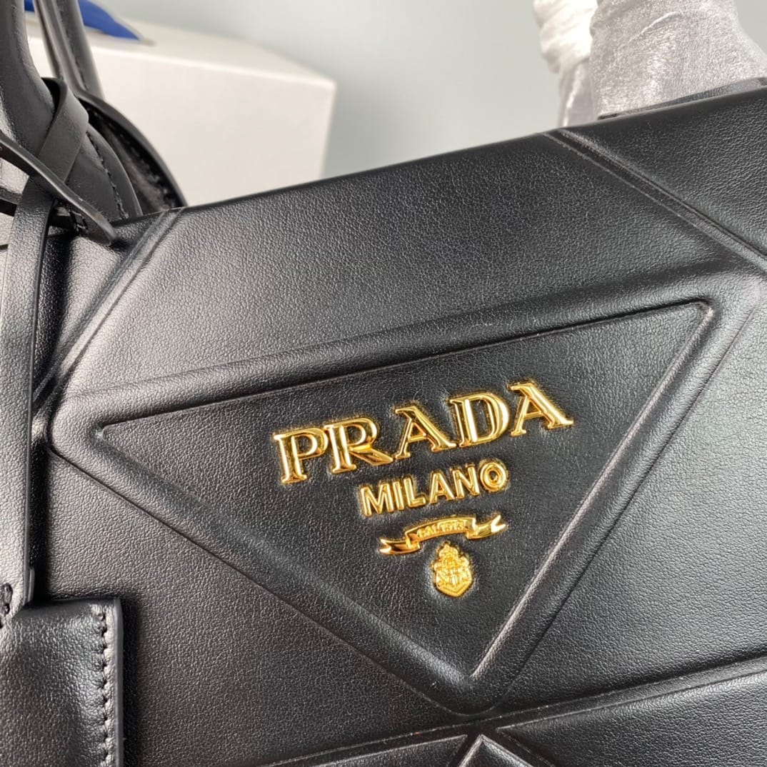 (中号)?新款三角菱格托特包?托特包?1BA378到货啦?这款托特包采用进口小牛皮,纯手工三角菱格设计,唛头由浮雕三角形加五金散唛组成。内格配有拉琏口袋。简约又大气,时尚感满满。宝宝们赶紧入手吧。??尺寸:长35x高27x底10cm????!