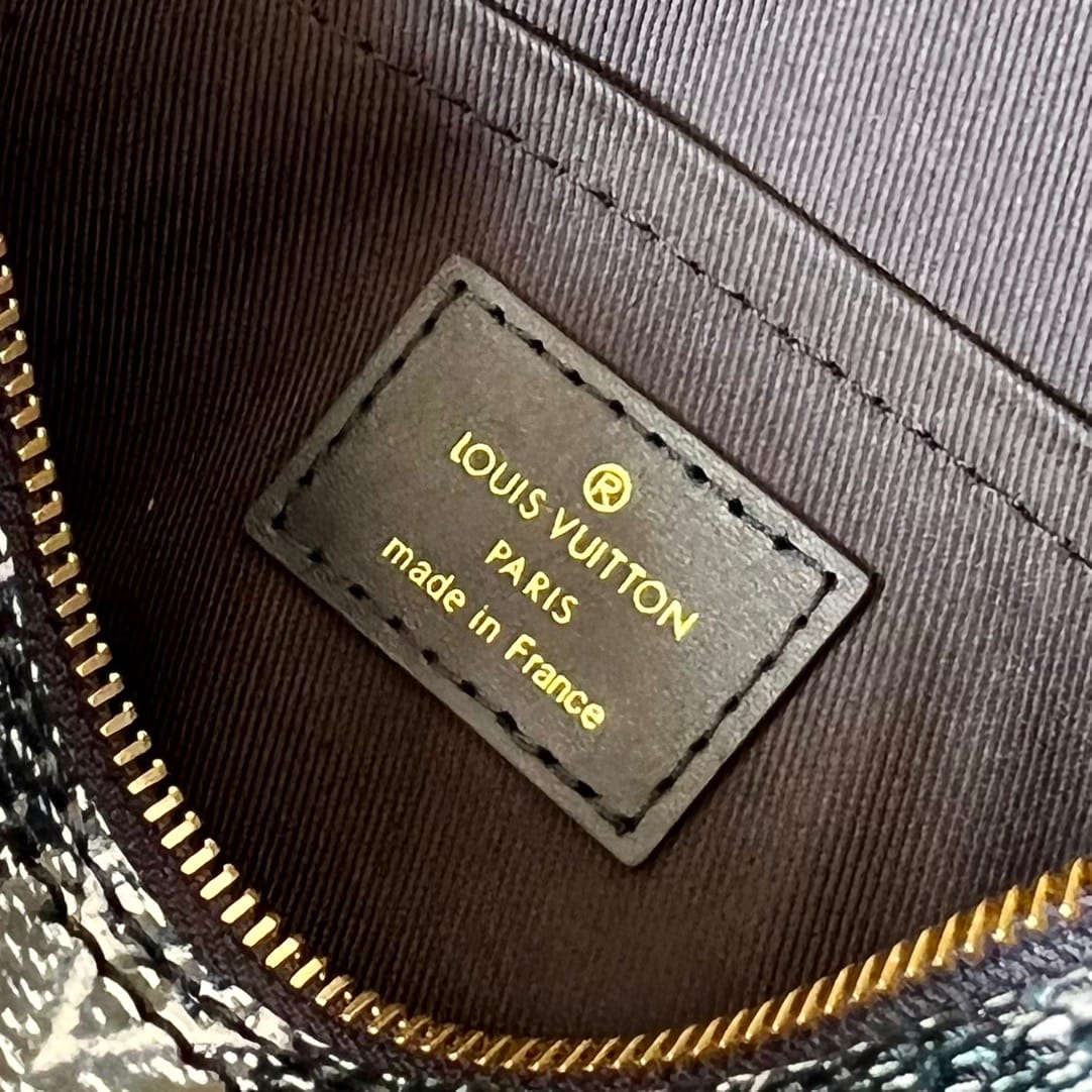 顶级原单 M23069蓝色 本款 Speedy Bandoulière 20 手袋以当季 Monoglam 面料塑造瞩目构型。该面料由棉与装饰线织就的 Monogram 提花帆布裁成,覆膜涂层闪烁莹莹金属光泽。该面料的全息色调于光线下变幻缤纷色彩,皮革饰边呈现立体雕塑质感。