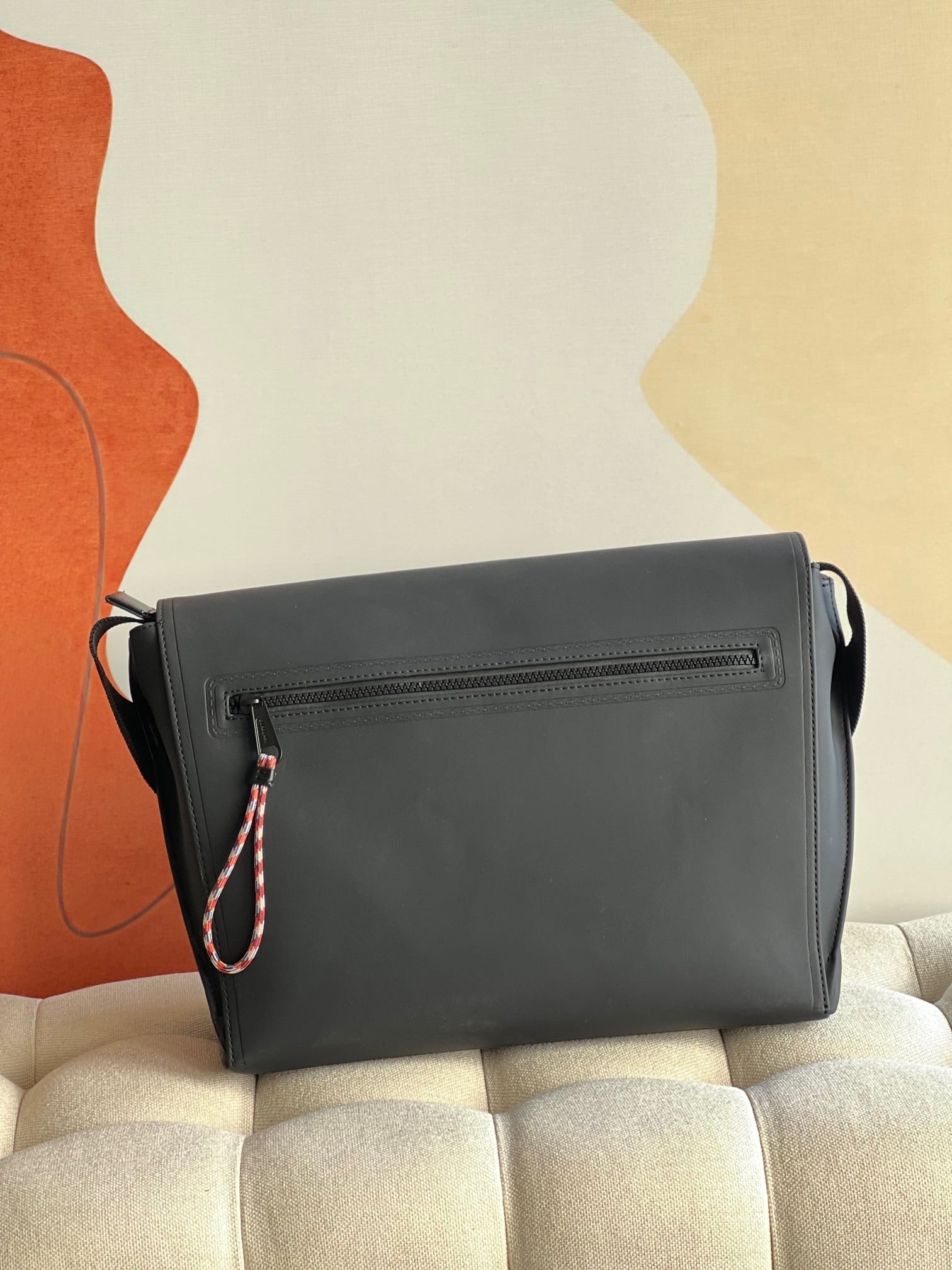 黑色,B家大容量信使包2463,焕新采用涂层帆布制作。细节