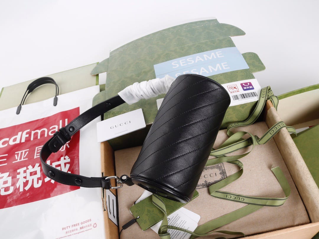? 材质? 黑色皮革,棉质衬里,圆形互扣式双G拉链头。