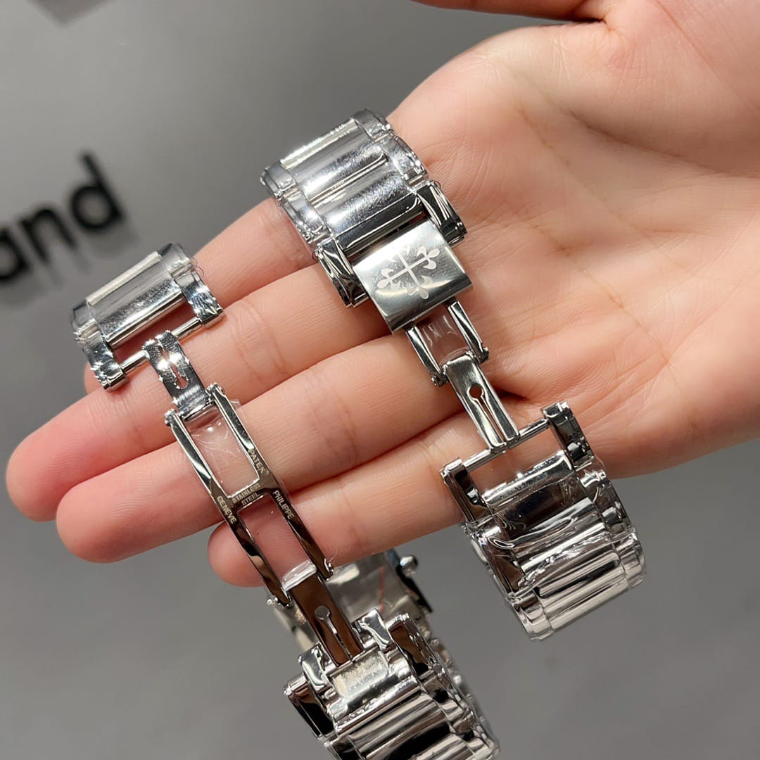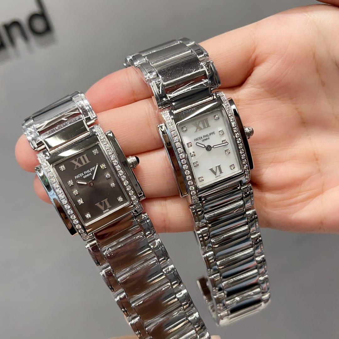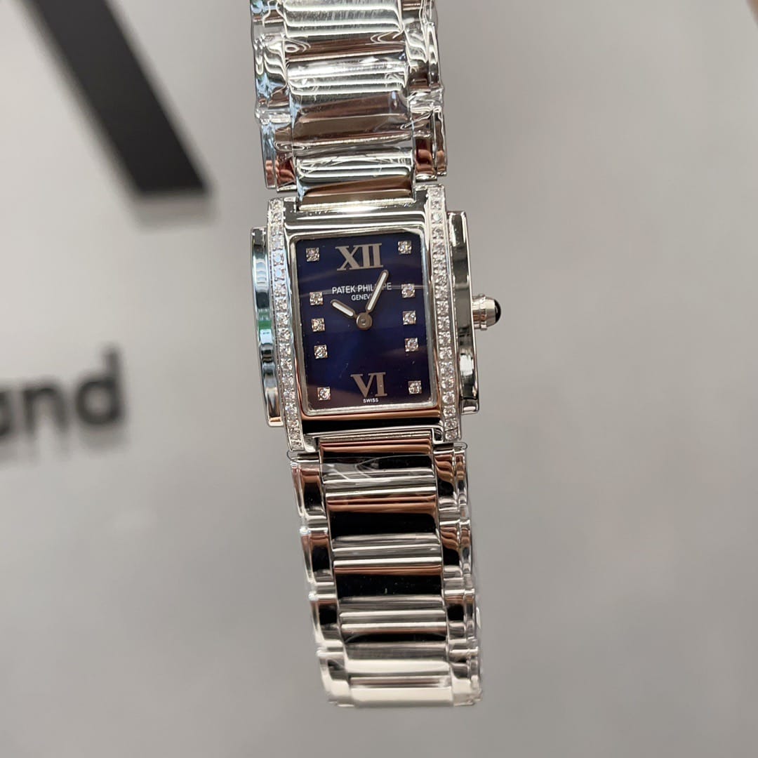百达翡丽Twenty-4系统专为女性打造的腕表,双层微弧矩形表壳影显匠心独运的装饰艺术风格。表盘两侧各嵌18颗钻石。表链由三排全手工抛光链节组成,搭配折叠式表扣,完美贴合腕部轮廓。采用瑞士进口石英机芯,走时精准。夜光指针表盘,承袭百达翡丽一以贯之的精湛工艺与匠心细节。
