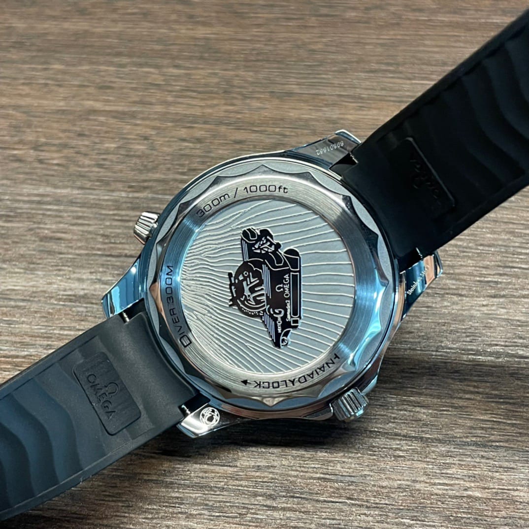 新品 42毫米欧米茄海马系列300米——“游艇” Nekton特别版腕表,经抛光和拉丝处理的精钢表壳和激光烧蚀黑色氧化锆(ZrO2)陶瓷表盘,哑光饰面饰有抛光立体波纹图案。5级钛金属单向旋转表圈饰以激光烧蚀潜水刻度。
