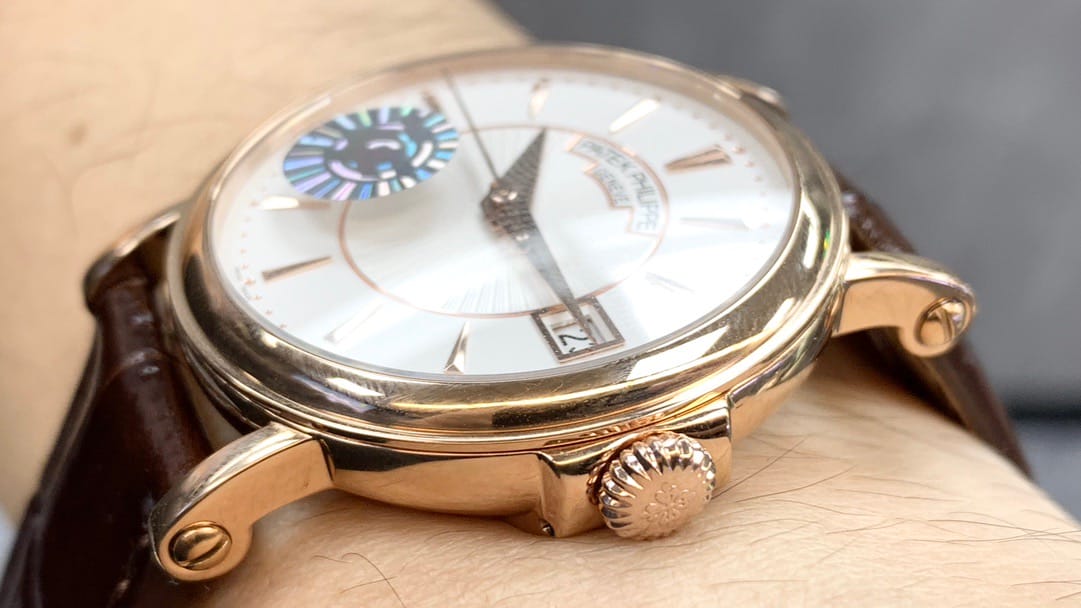 【表带】经典意大利小牛皮表带,纹路清晰,质感好。搭配圈市面最顶级的百达翡丽灯笼表扣,定制开关生耳,快捷方便,通用原装无压力。