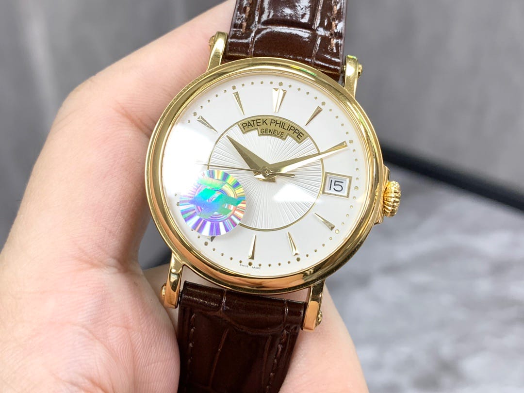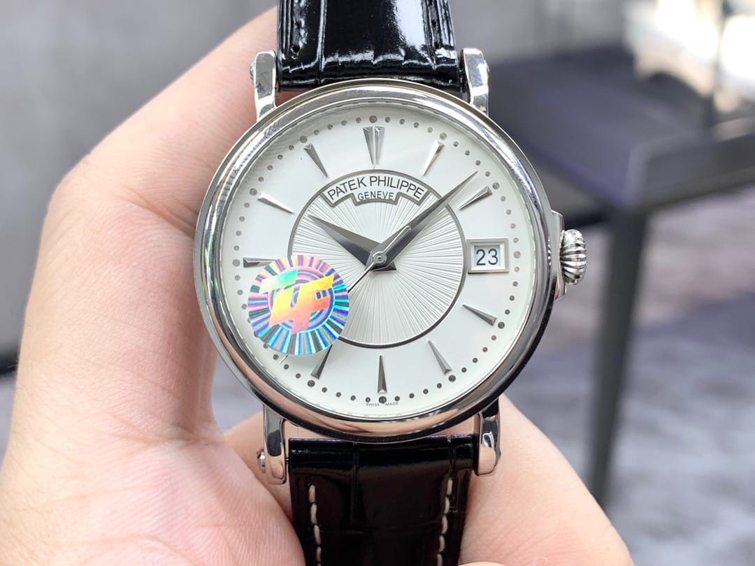 腕表尺寸38mmX10mm 超薄定制款式,一体式机芯,真齿轮??转动,日历窗口与原版一致,偏靠右边,日历字体清晰,非小厂日历窗口?不对版,日历偏靠左,日历数字字体太小,一眼假,厚度超厚!有图有真相,没有ZF的佩戴感受,认准ZF品质,品质保证