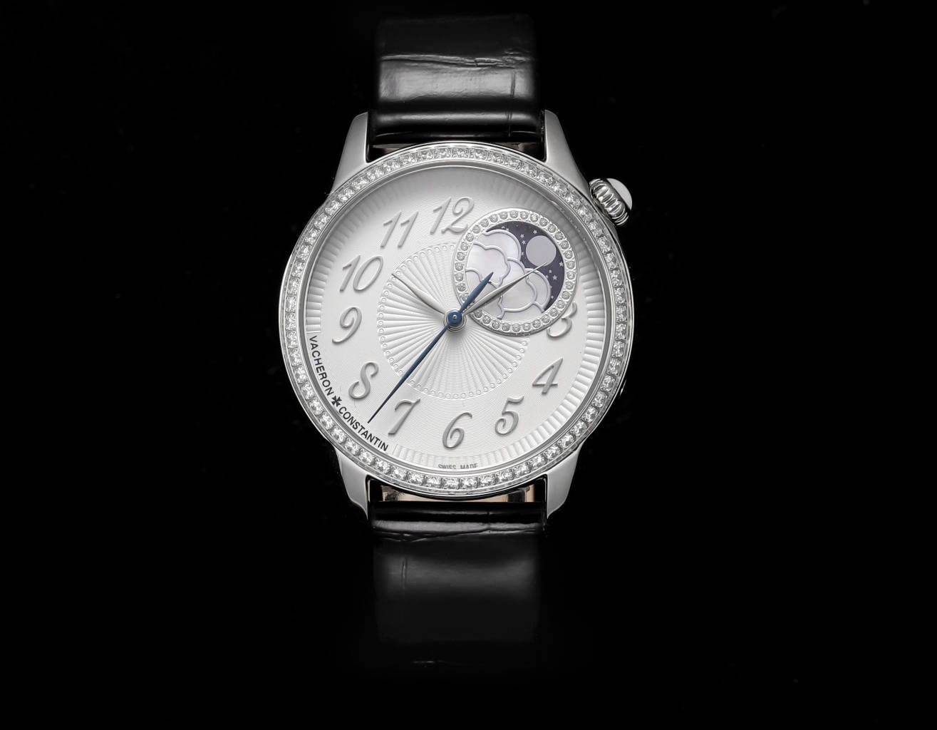 新品江诗丹顿Egérie伊灵女神系列再添新作!沉淀时光雅韵,流转日夜芳华。超薄机械女式腕表延续系列风格!全新乳光表盘以璀璨美钻相饰,褶皱纹饰历经数月调试,运用传统的“织锦(tapestry)”工艺制作而成,