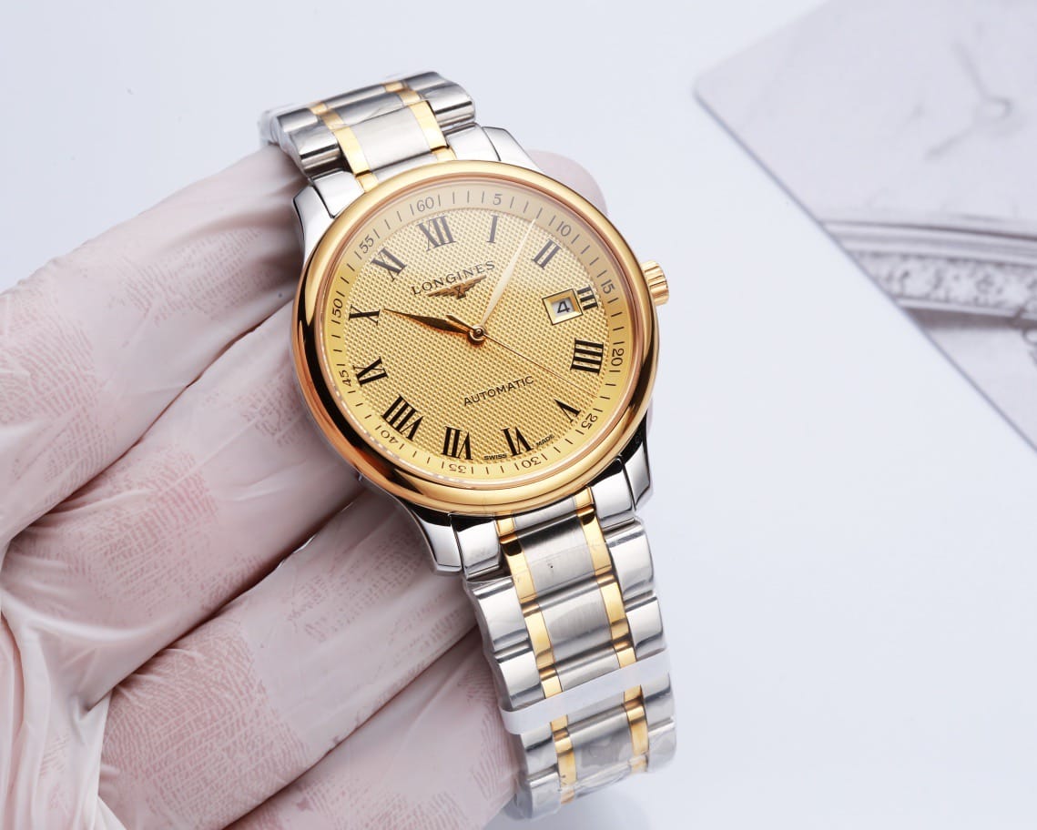 台湾厂出品,浪 琴 名匠男士系列 腕表尺寸39.8/11.9mm。纤薄的圆弧型壳套(防水可达120米),壳侧身细腻圆润(质感十足)(壳身严格按照专柜品质开模)蓝宝石水晶玻璃,机芯配置日本西铁城8215机芯,把头的大小以及字体均严格按照专柜的样式复制。头层牛皮表带/原装表扣,每个单品均是经过台湾厂严格要求,表壳后盖的编码与附带的卡片吊牌编码均是一致的。(极致的复刻要求造就高品质,玩的不止是概念!)