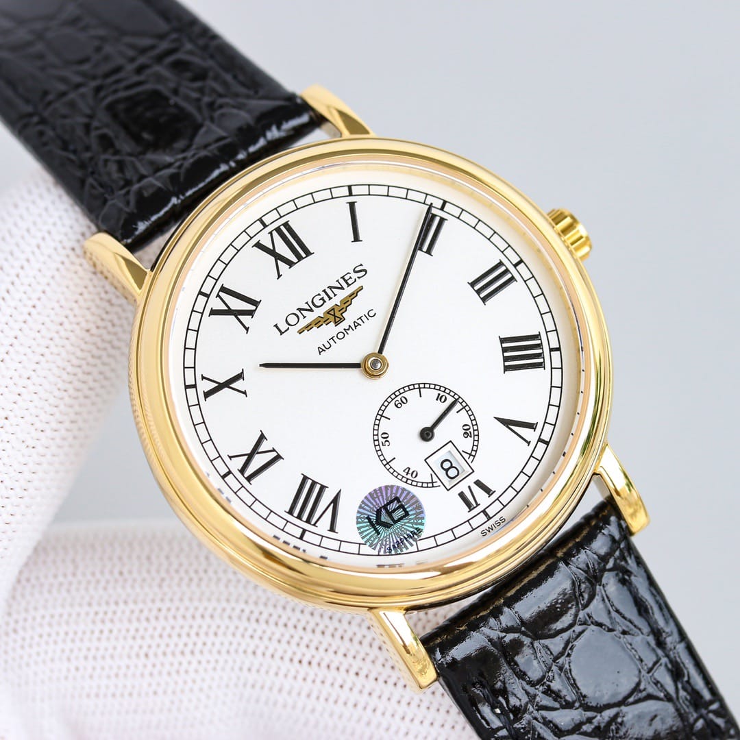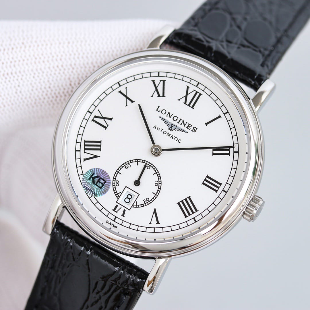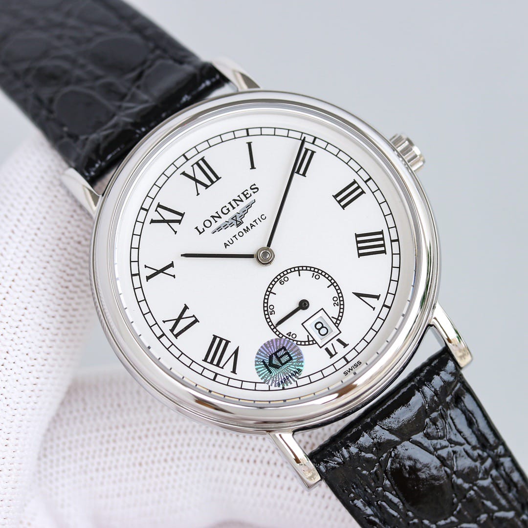 浪琴最新优雅系列,优雅小秒百搭腕表永不过时,搭配浪琴最新L888.2两针半全自动机械,日内瓦鱼鳞纹打磨一体机芯,双面真皮表带,日历位置同正品一致!40mm最新专柜尺寸 专注于芯,精致于型,质量稳定零返修