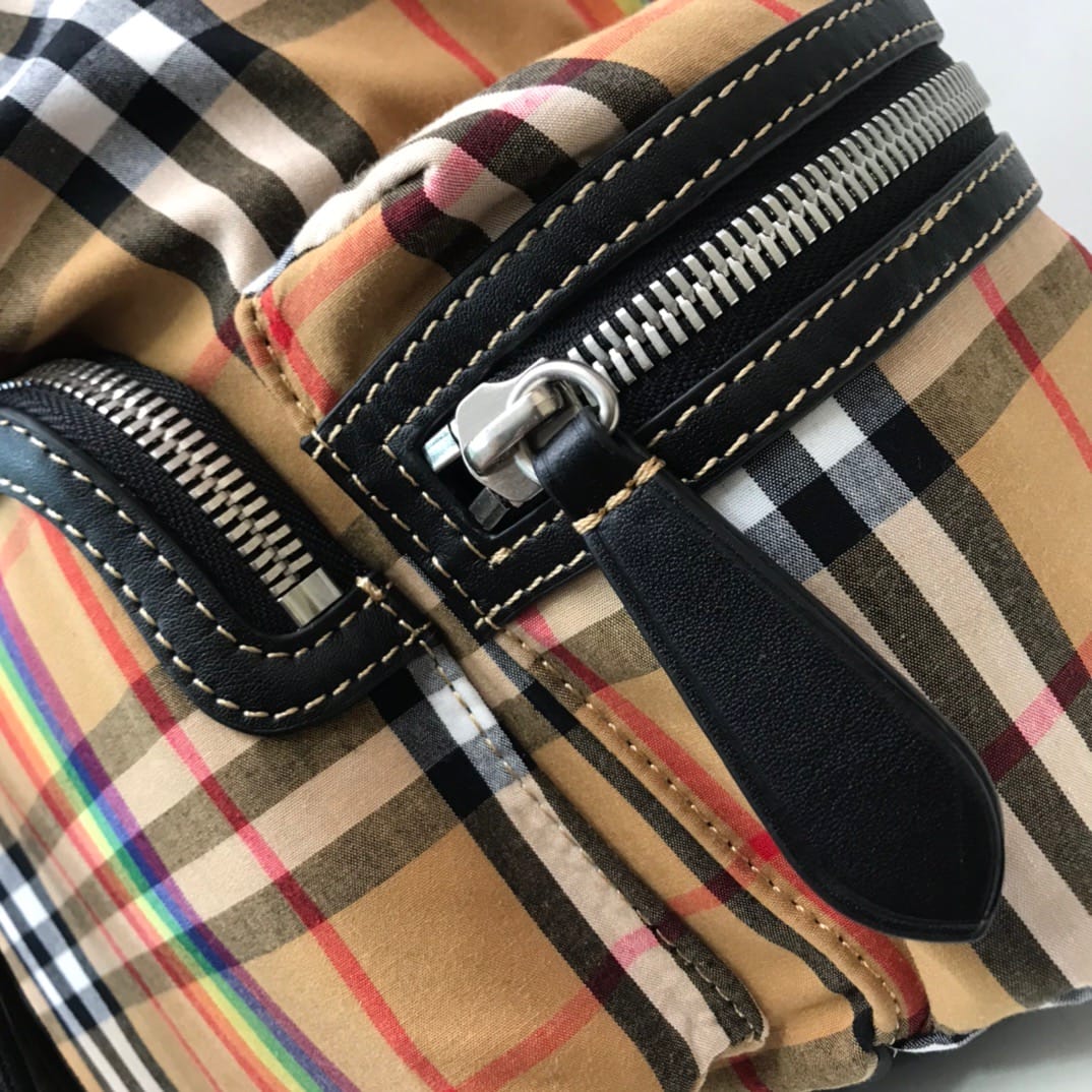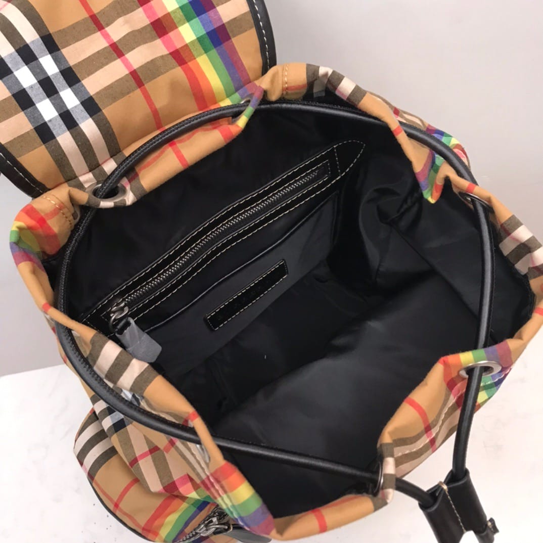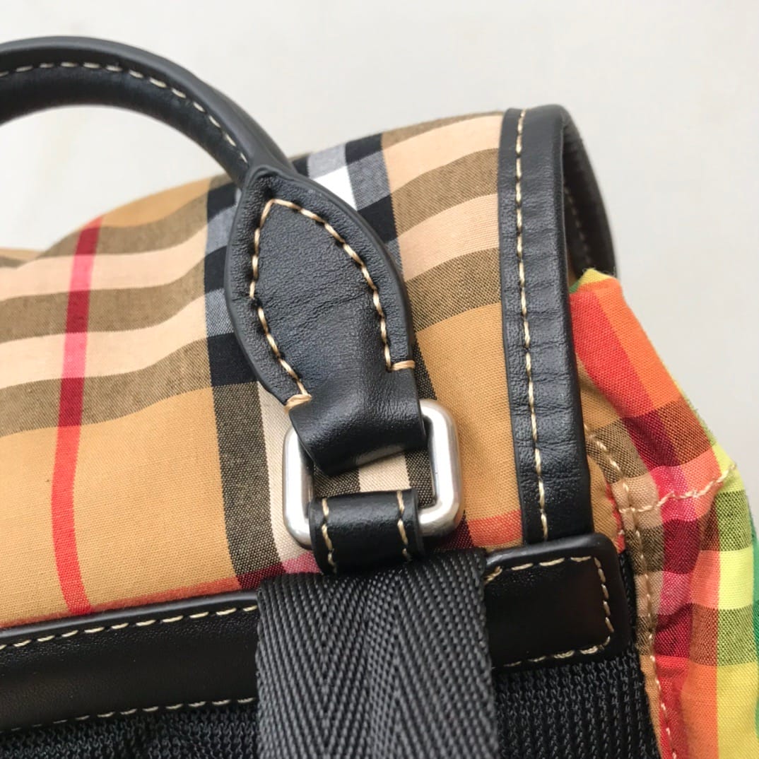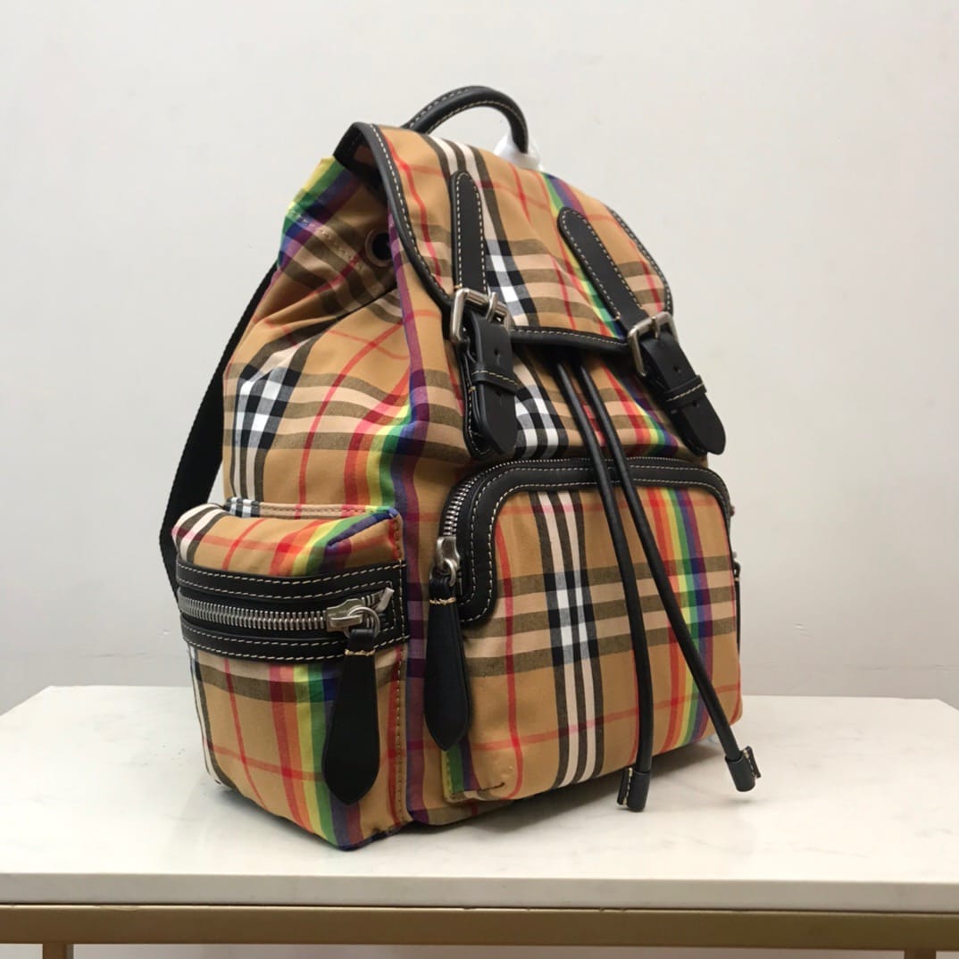 【B家顶级原单】 The Rucksack - 中号 Vintage 格纹拼皮革军旅背包,多隔层,皮革顶部提柄;可调式帆布拼链饰肩背带,扣环、按扣与抽绳开合。 尺寸:W22 x H33 x D14cm 款号:40731121