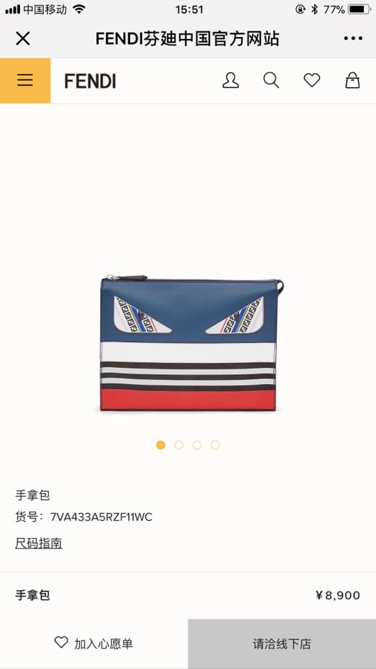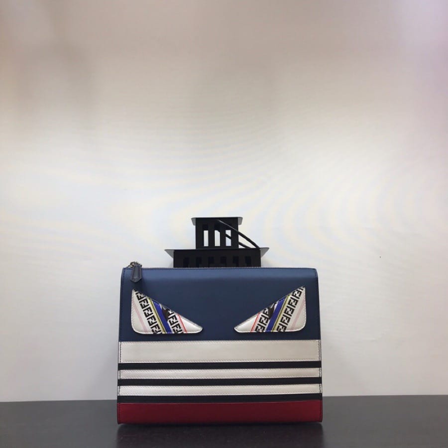 FEND1?拉链开合小口袋?内置平口暗袋。蓝色、白色和红色小