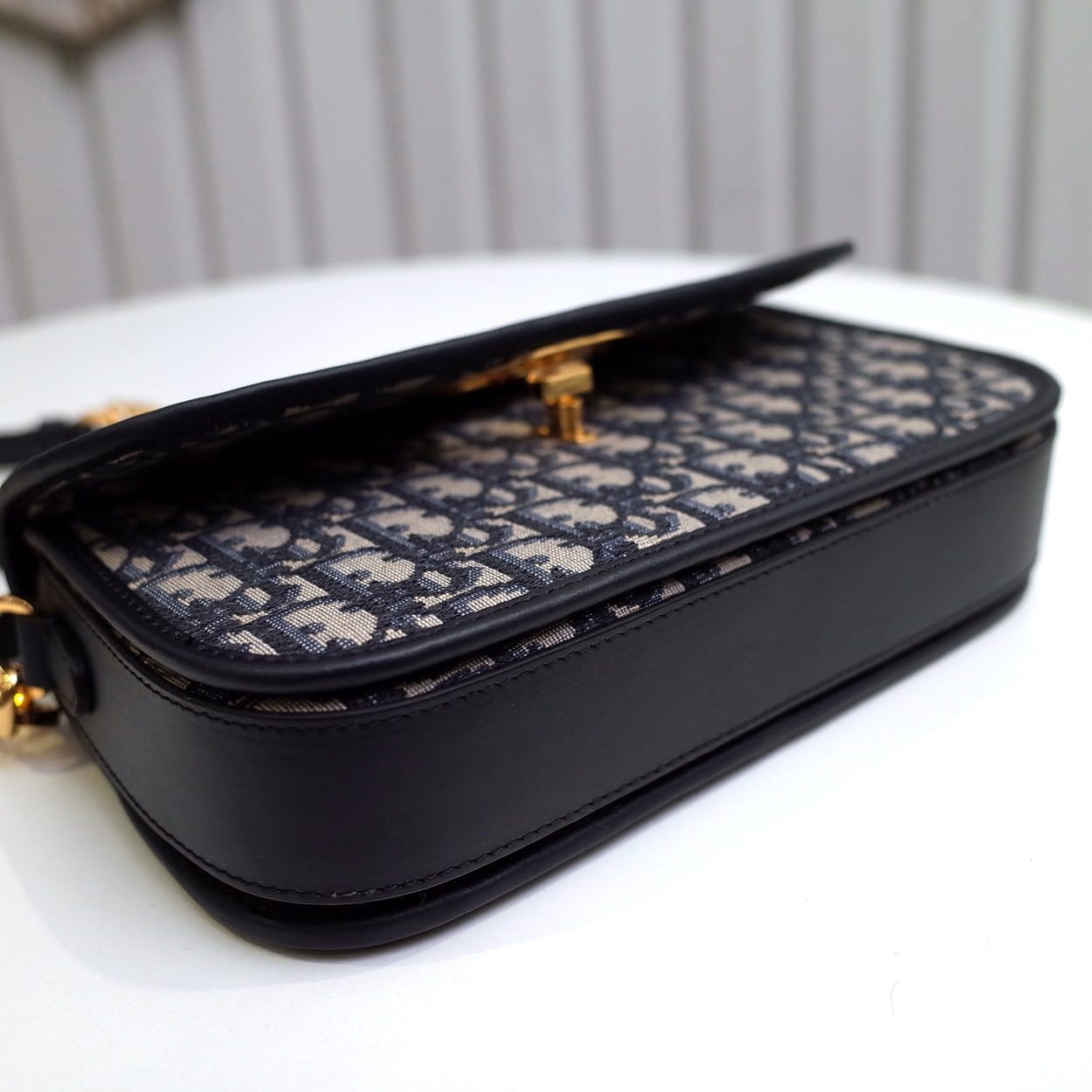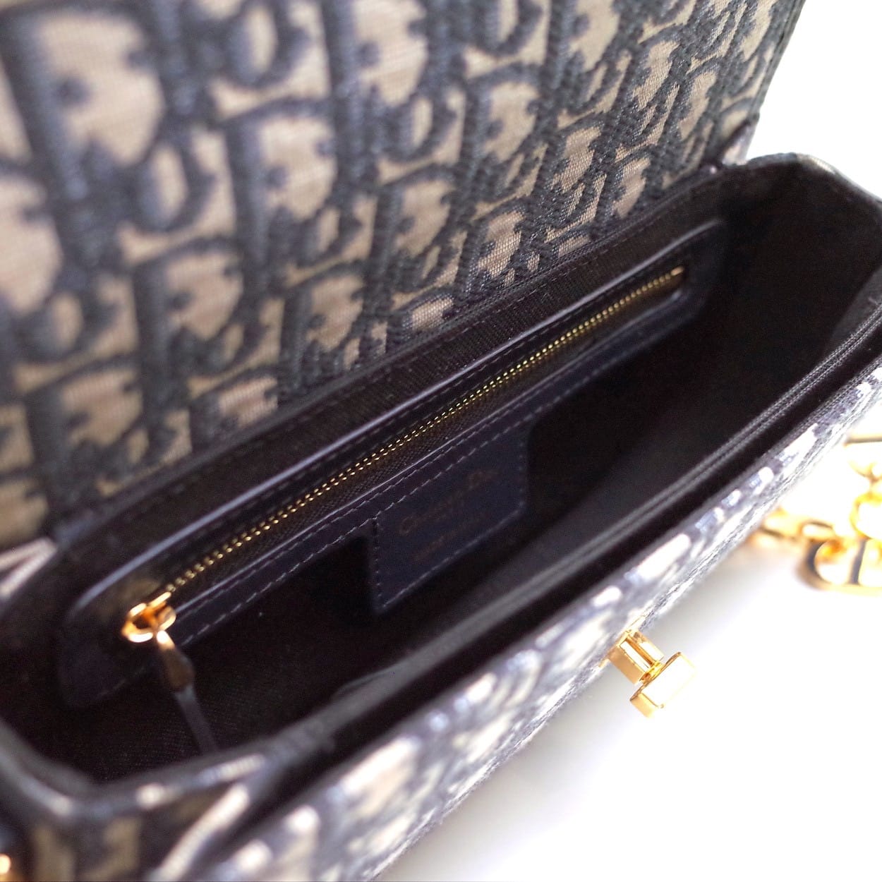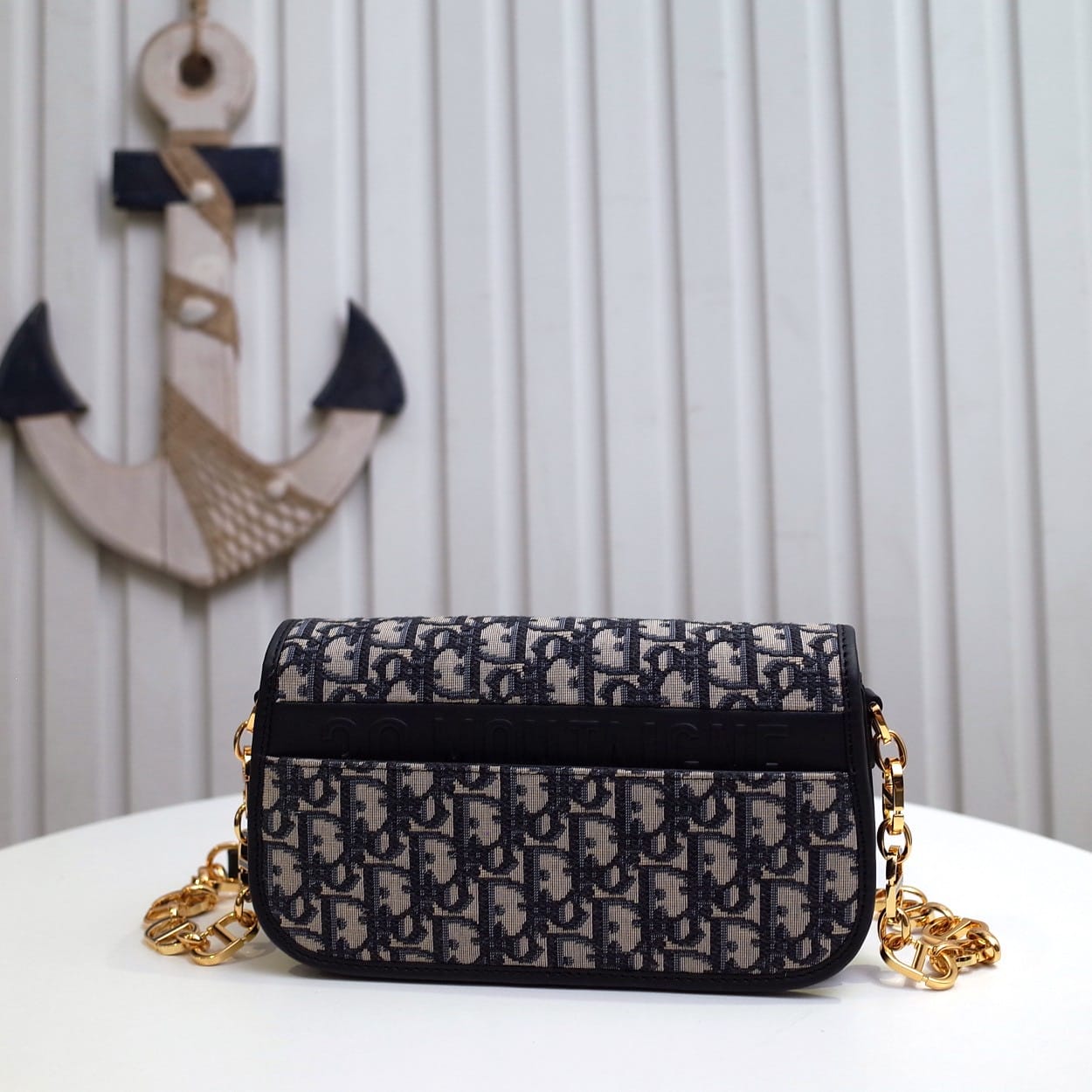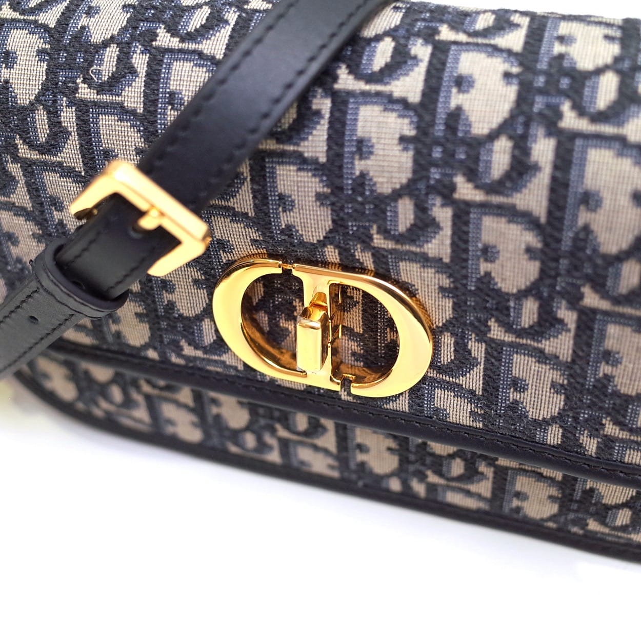 这款 30 Montaigne Avenue 手袋采用典雅的设计,提升此经典系列的格调。采用蓝色 Oblique 印花面料精心制作,圆角翻盖曲线精致,饰以复古金色饰面金属 CD 扣环,灵感源自 Christian Dior 香水瓶的封口。背面饰以压花 30 Montaigne 标志,搭配由金色饰面金属和与皮革同色调的珐琅链环交替组成的经典链条。褶层设计,空间宽敞,廓形精致,可手提、肩背或斜挎。