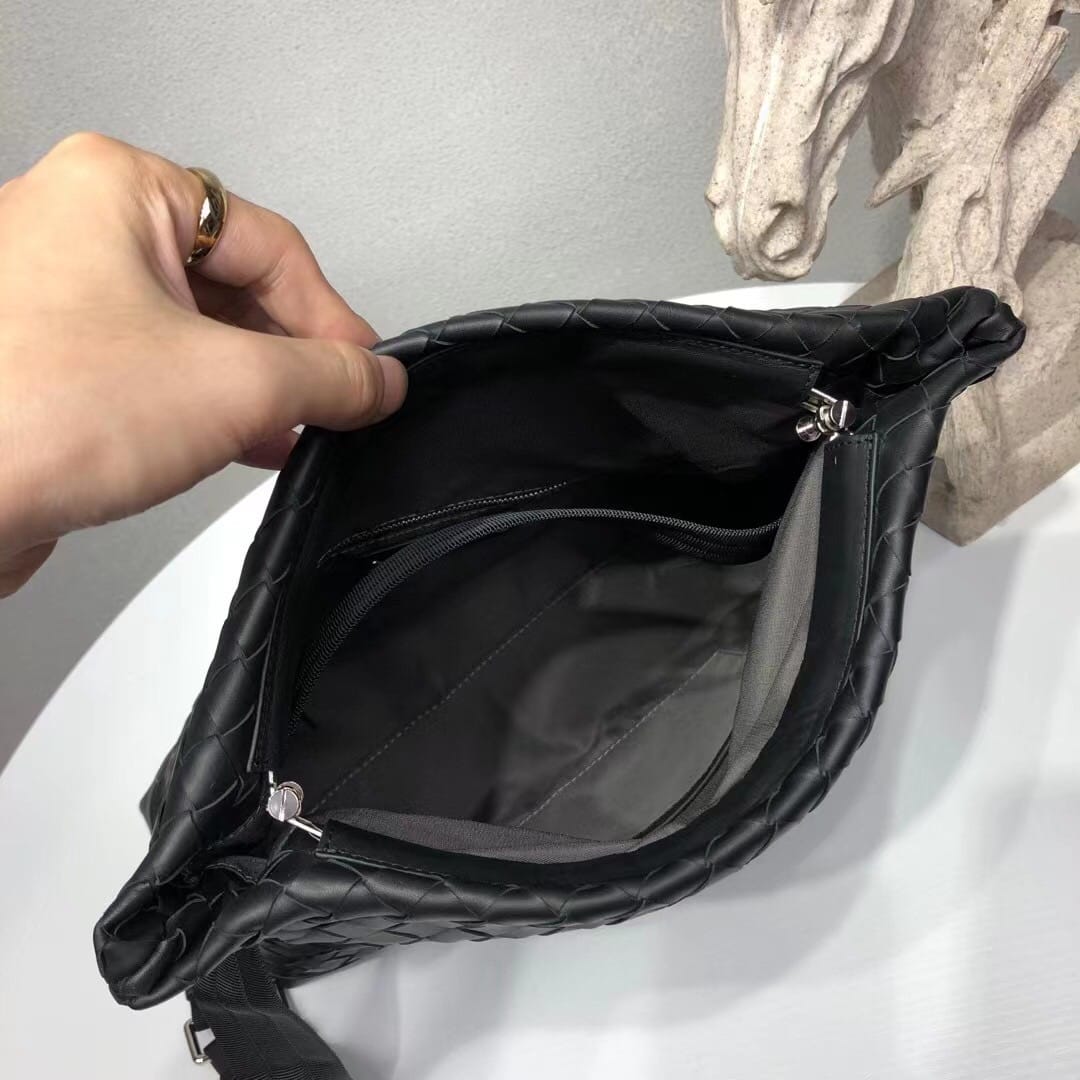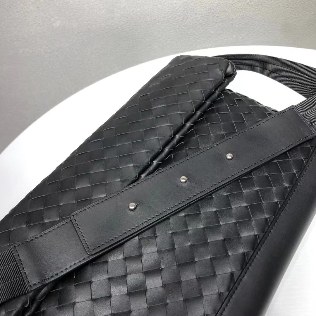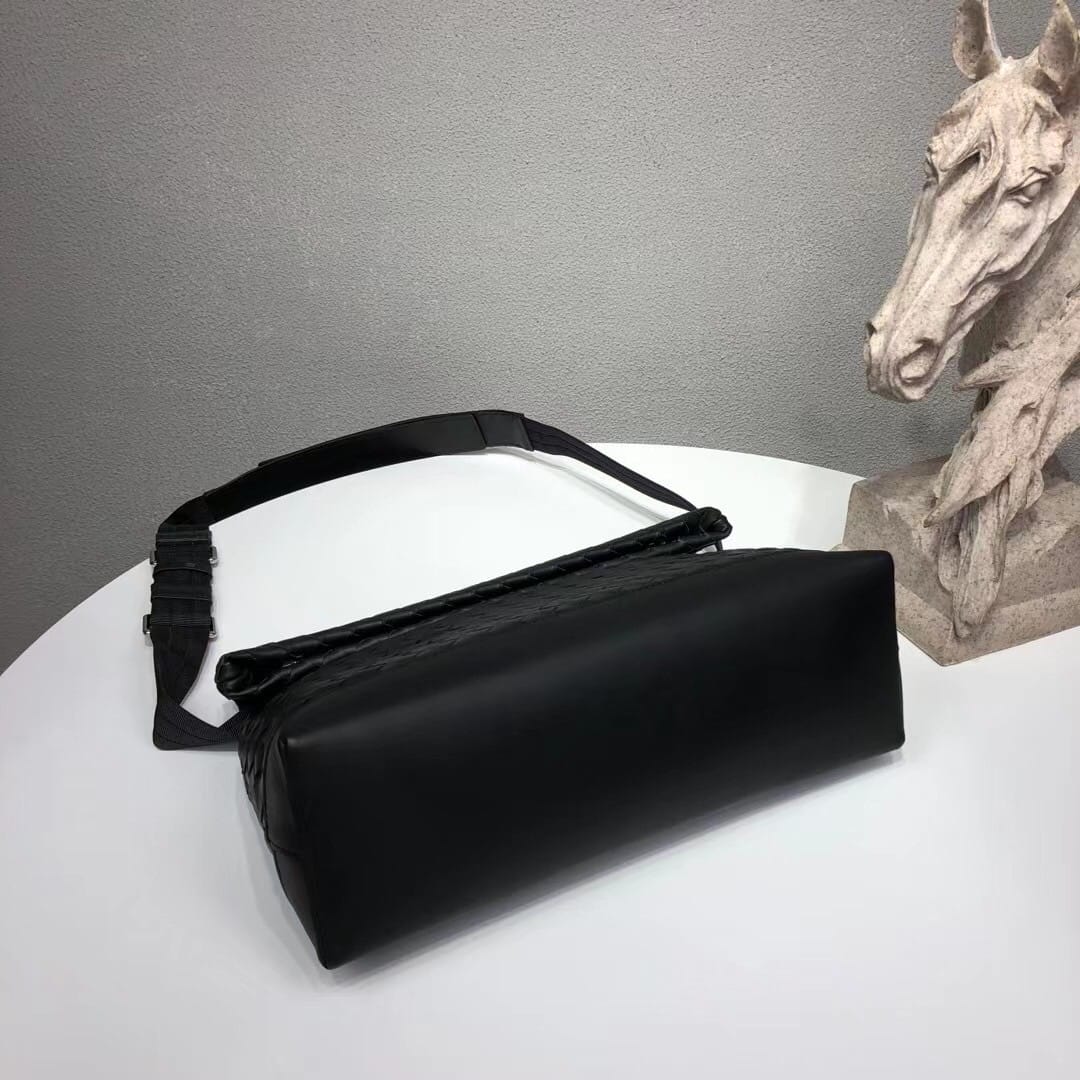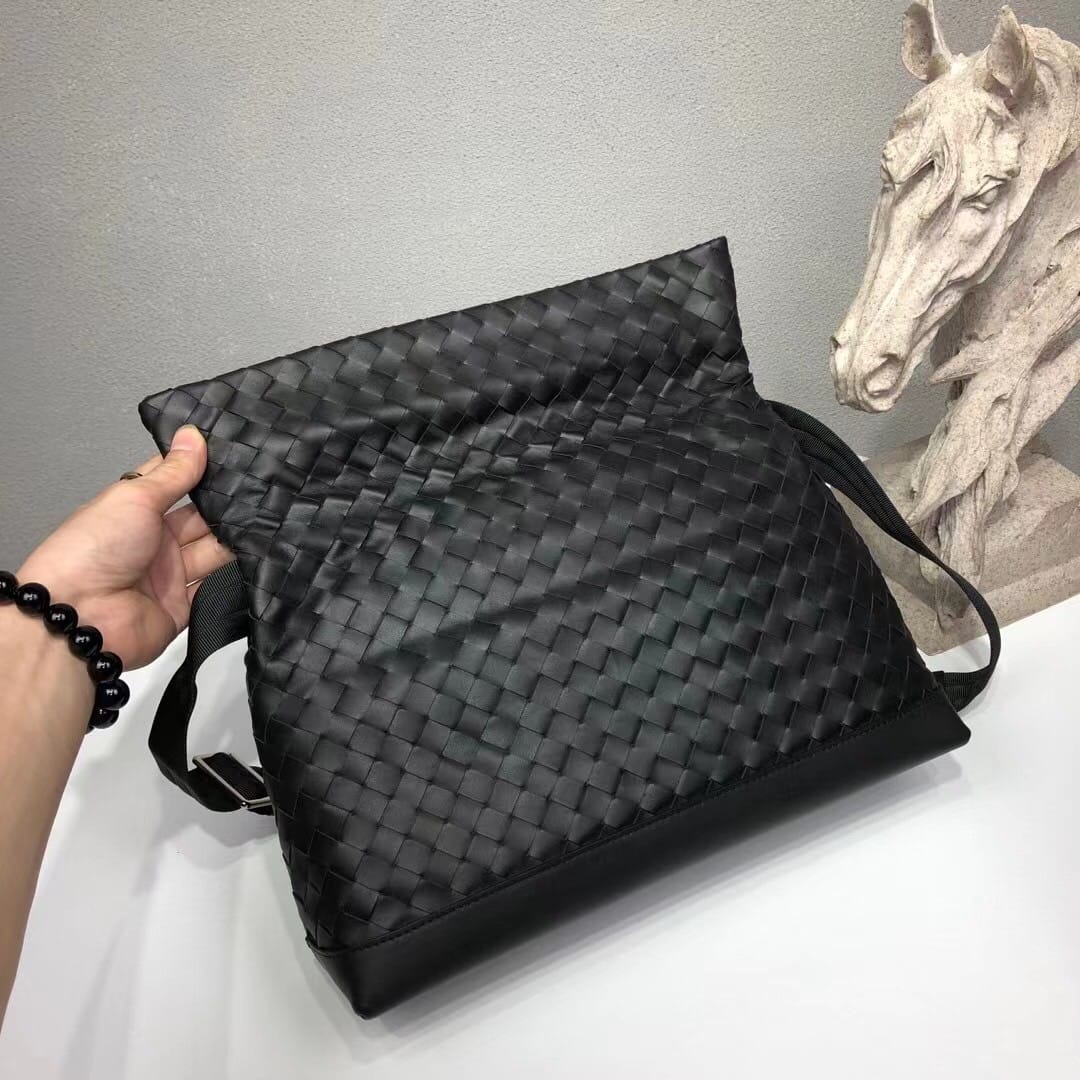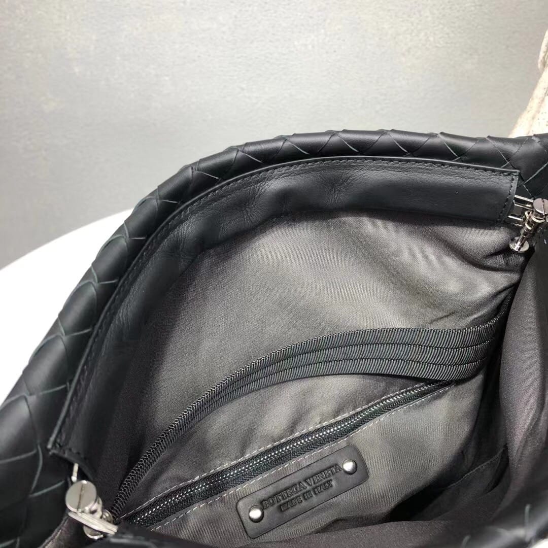 BOTTEGA VENETA葆蝶家经典男女同款进口打蜡牛皮邮差包? ?INTRECCIATO编织HYDROLOGY皮革邮差包 ?可折叠顶部 ?可调节可拆卸丝质肩带 ?边框开合 ?内部采用棉灰里布,五金采用银色抛光 ?规格:34*25*12cm