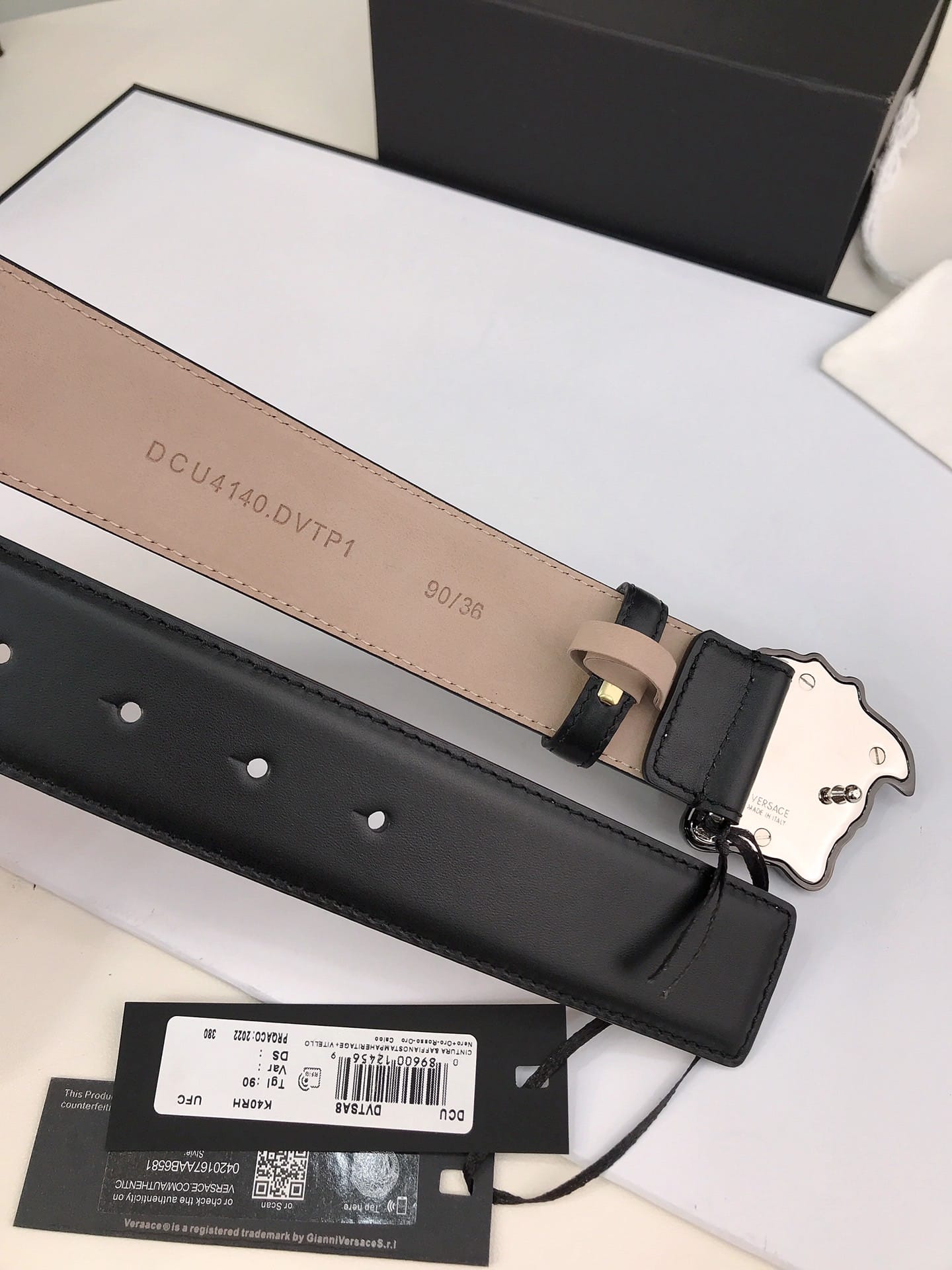 范思哲VERSACE 原单进口 ,个性主义,时尚与文明的象征,深邃立体的徽章人头,腰带采用原厂小牛皮,VERSVE设计师以大胆前卫的设计理念,创造出一个独特的时尚帝国 宽度4.0CM
