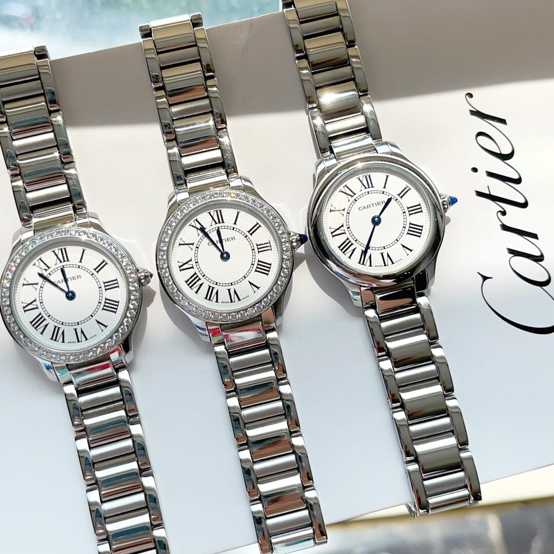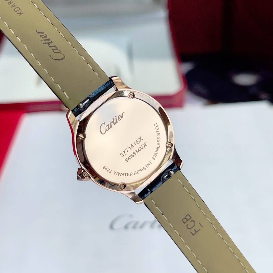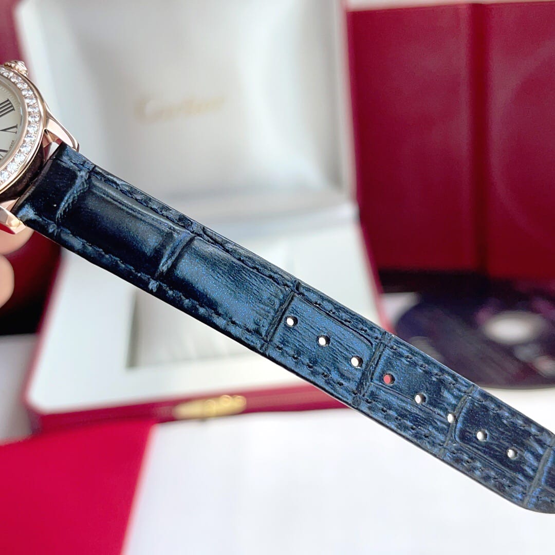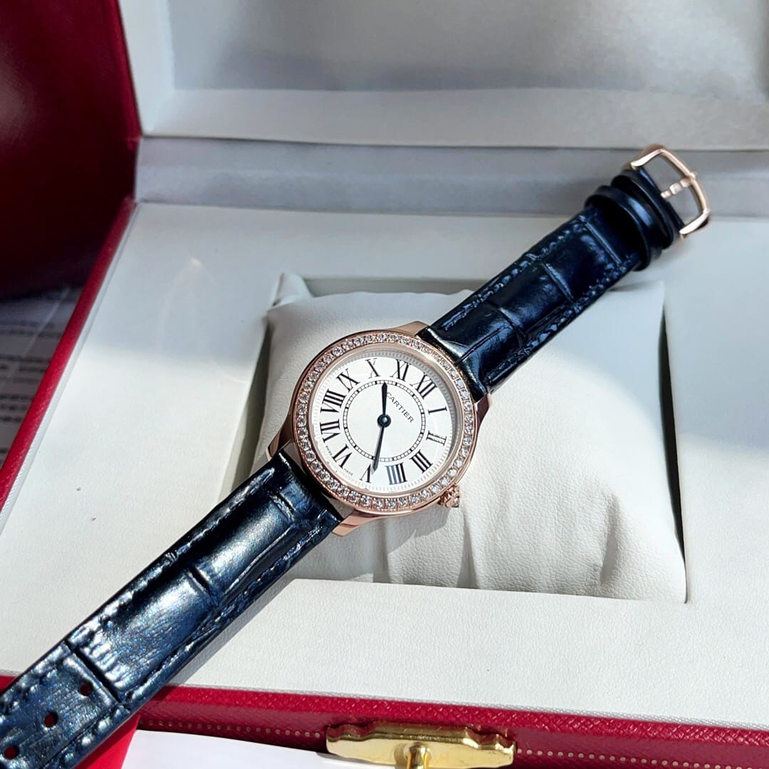 RONDEMUST卡地亚新款伦敦系列腕表29mm,全新RondeMust系列腕表,承袭经典圆形造型以更流畅的表壳,压纹装饰喷砂表盘,罗马数字时标更为简洁。同时搭配更精致的凸角、全新造型的蓝宝石尖晶表冠及更丰盈圆润的外圈,瑞士进口石英机芯,316L精钢表壳表链,同款意大利纳帕细纹小牛皮表带,表带搭配便捷快拆装置,取代Rondesolo重新出发,更柔软细腻的感觉。
