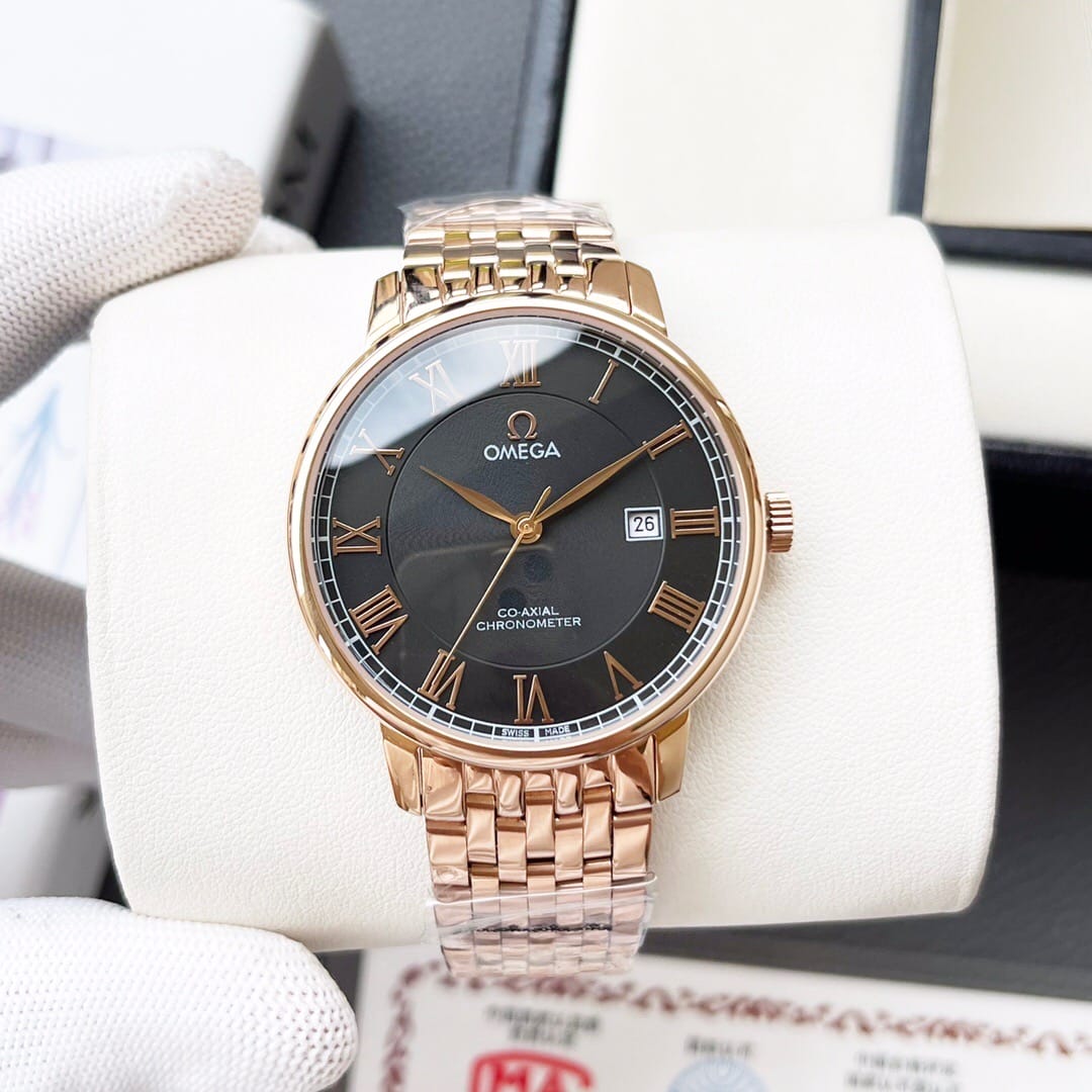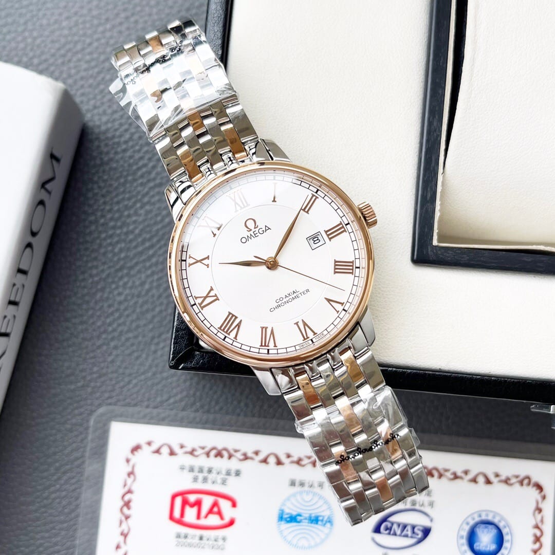 欧米茄-OMEGA???经典男士腕表 进口日本8215全自动机械机芯 简约3针设计 高耐磨水晶玻璃镜面 时尚大方 真牛皮表带配以传统针扣[玫瑰][玫瑰][玫瑰]直径40mm 厚12mm 实物拍摄 零P图