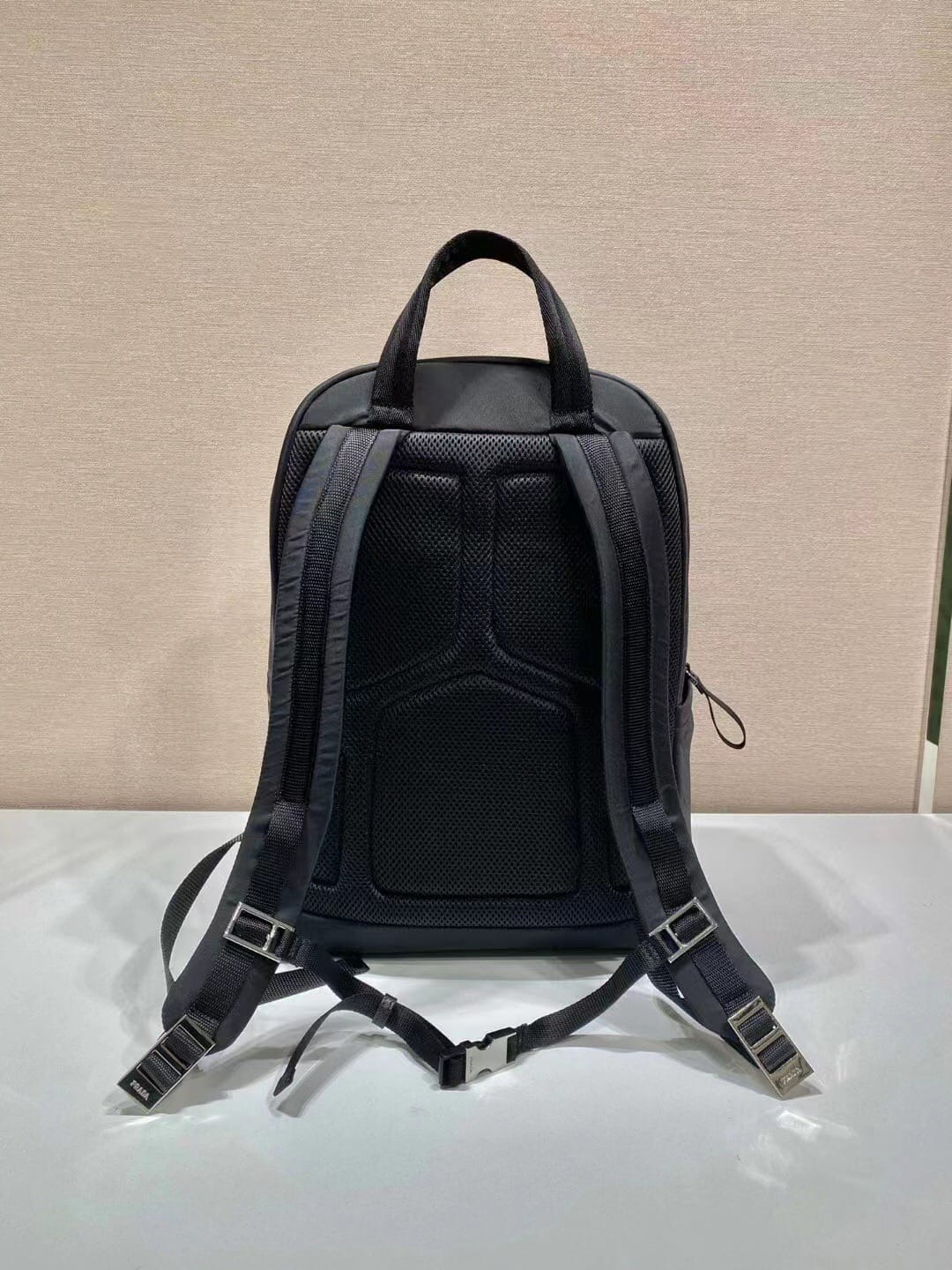 新款双肩背包?最新双肩背包2VZ085,采用进口Saffiano皮革材质和进口尼龙布料,可调式尼龙肩带,拉丝金属配件,这款尼龙背包多个口袋和加衬背部设计颇具设计特色。 Linea Rossa乳胶徽标标签装饰别具一格,轻便又时尚,又是一款永久不过时的暴款,赶紧入手吧??