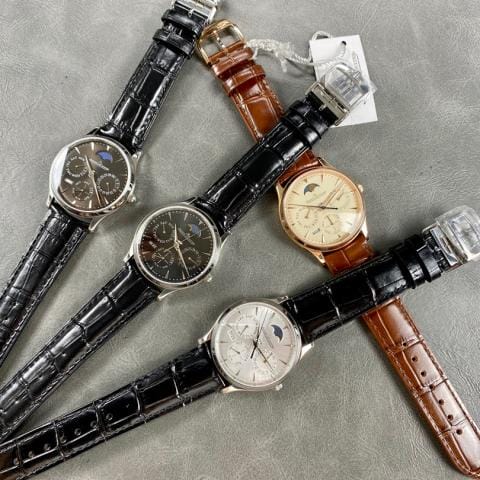 一:壳圈底的材料均使用和原一致的精钢材料,每个配件均单独通过CNC精密制作,以此还原本来的外观效果,保持原39mm大小,厚度更是最接近原装的尺寸,在复杂功能全实现的基础上,尽可能控制整体厚度,现做到10mm左右。 二:面盘的还原,根据原装尺寸还原,刻度丁均为开模真丁,立体感和光泽度无限还原,尺寸和丁的位置更是全QC,3个功能盘的做法跟原装一致均为凹下,月像窗口和万年历窗口立体凸凹感更明显,刻度点和Logo也跟足原版,微凸的观感,所有面盘色也尽可能的还原到一致。