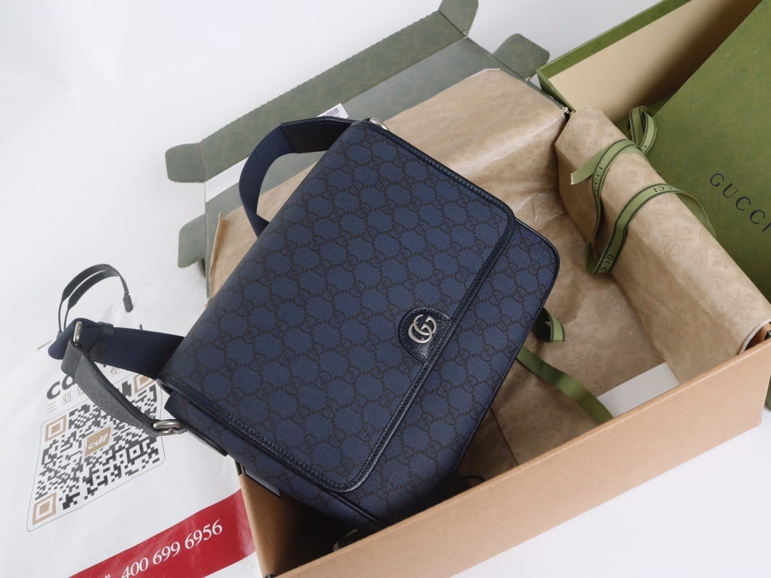 简介;GG Supreme Tender帆布魅力演绎男士系列配饰,柔软材质和耐用特性为品牌经典设计注入当代格调 这款Ophidia系列邮差包采用蓝色和黑色GGSupremeTender帆布,并饰有双G配件。