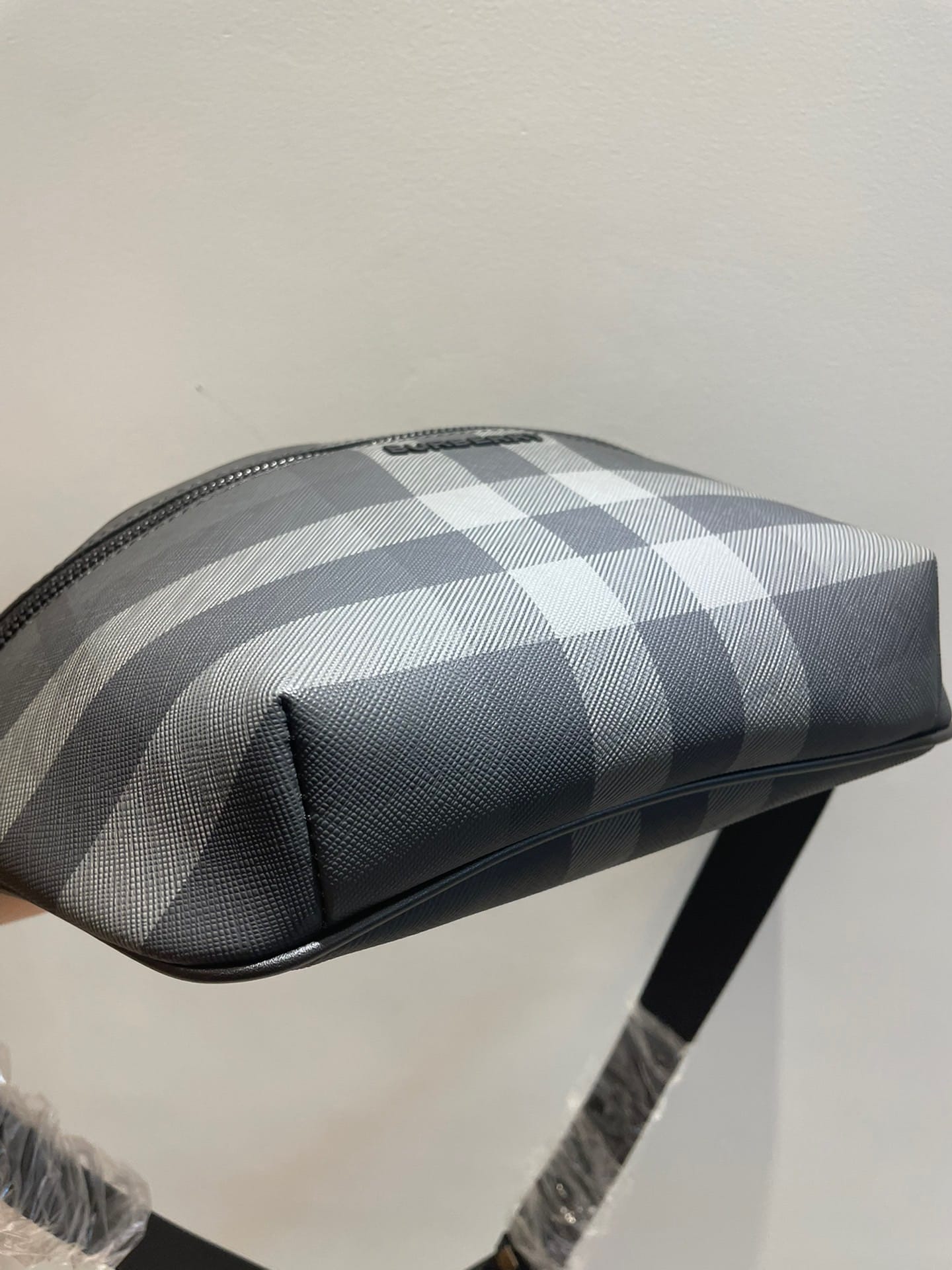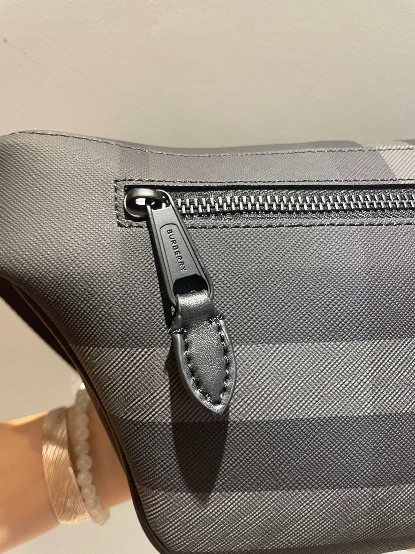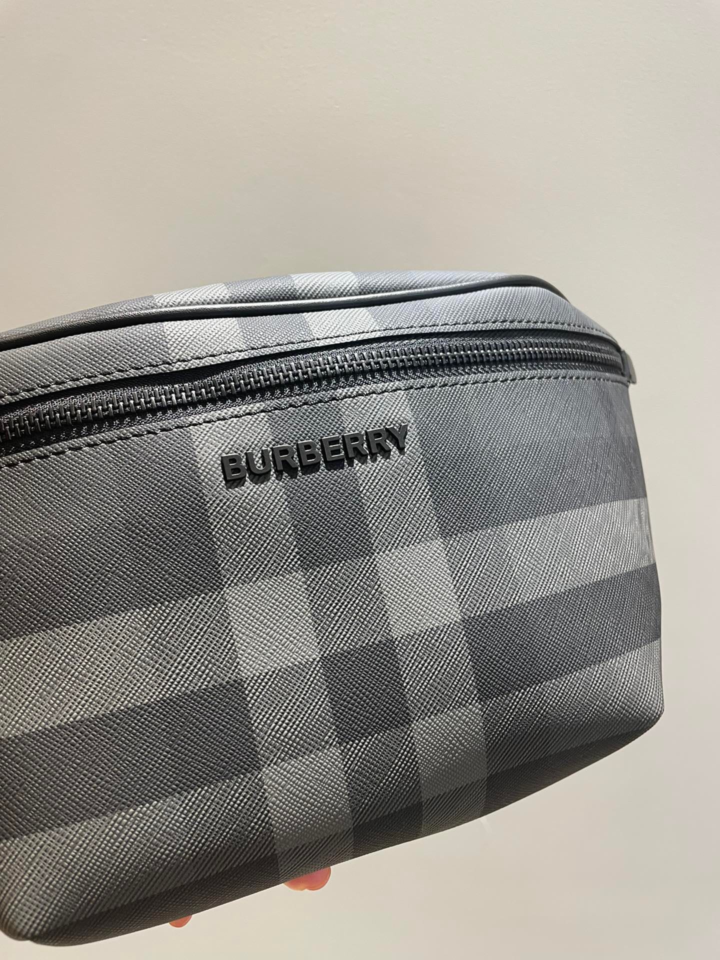 bur最新桦木棕格纹腰包,呈现标志性格纹设计,装饰皮革边饰及