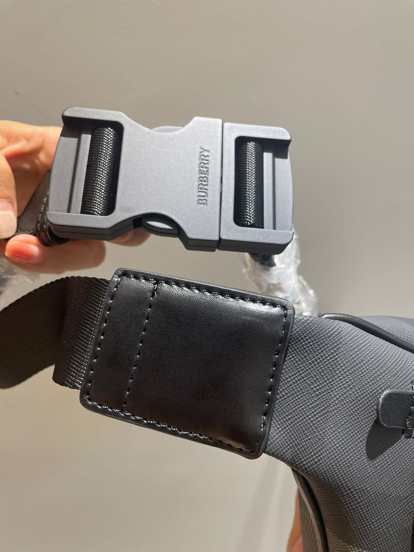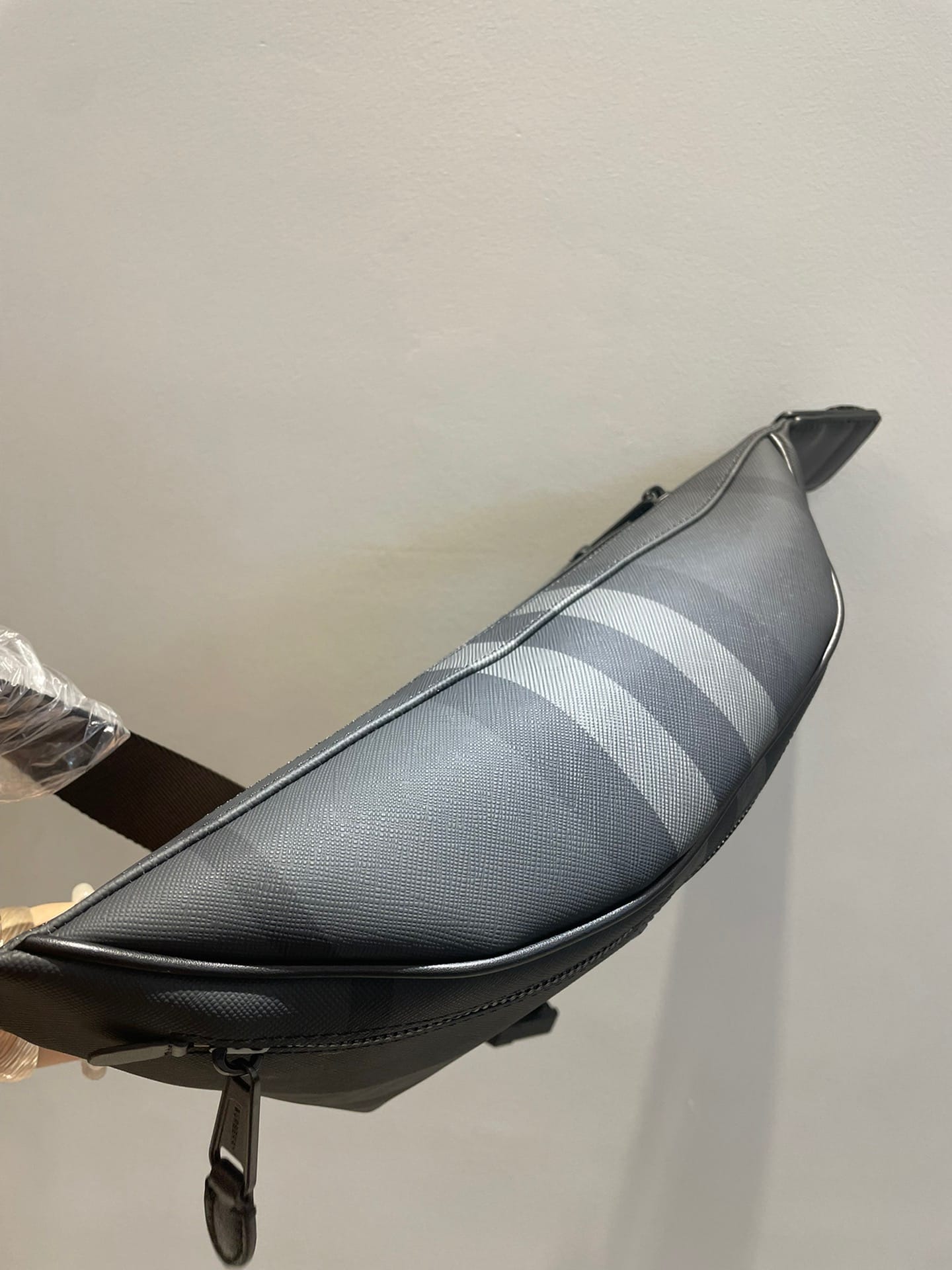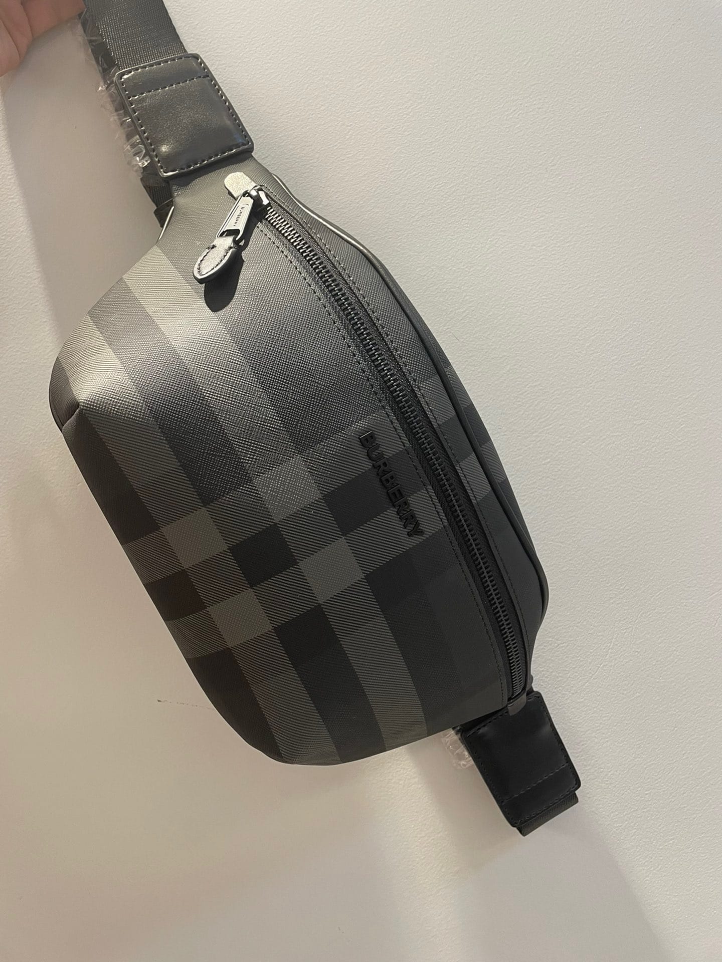 bur最新桦木棕格纹腰包,呈现标志性格纹设计,装饰皮革边饰及