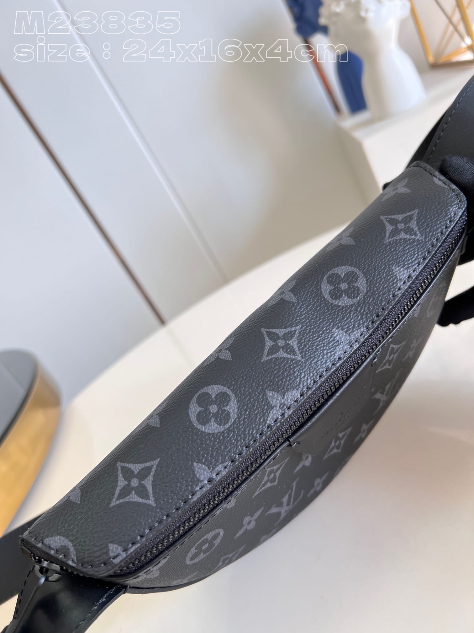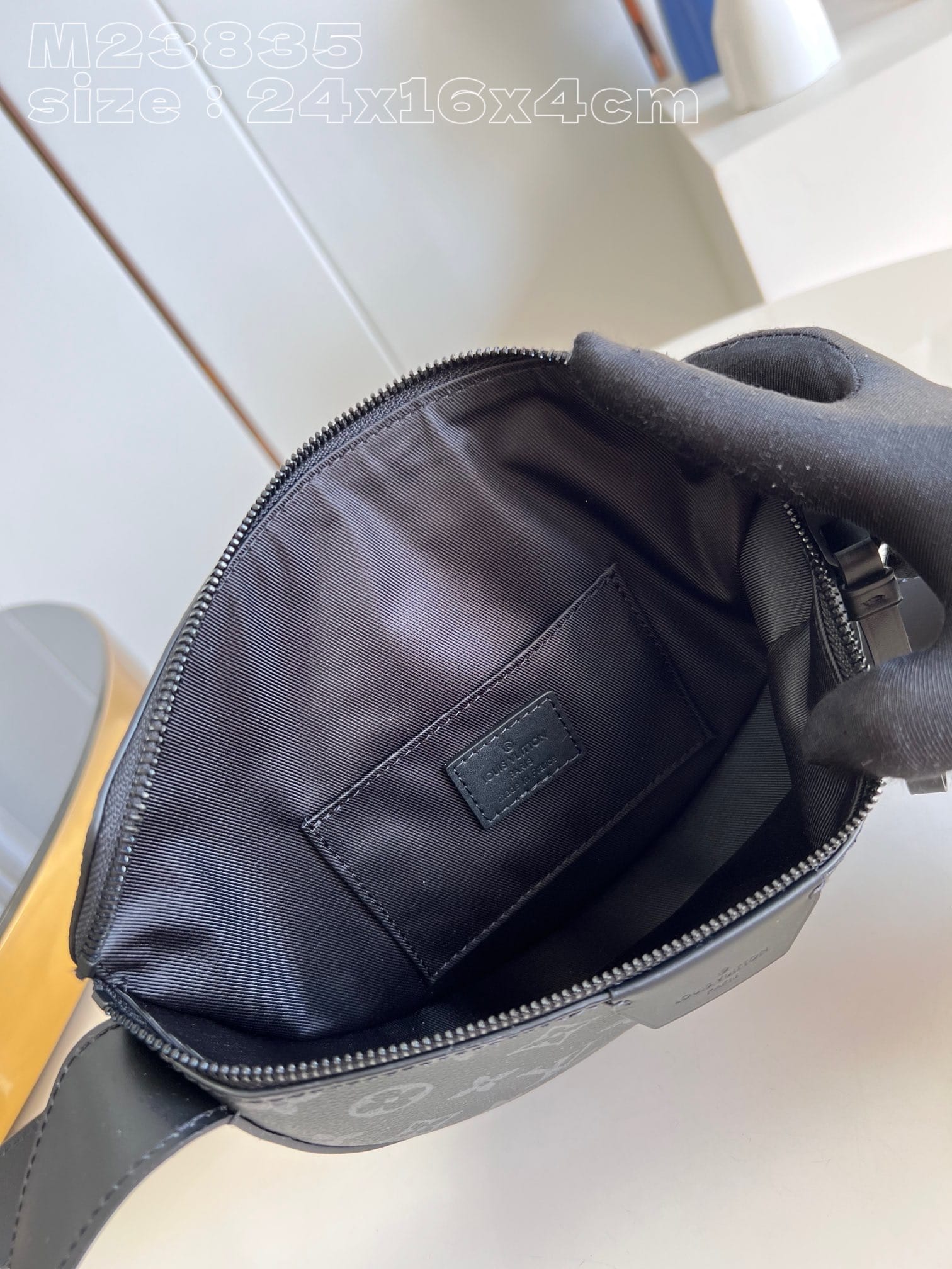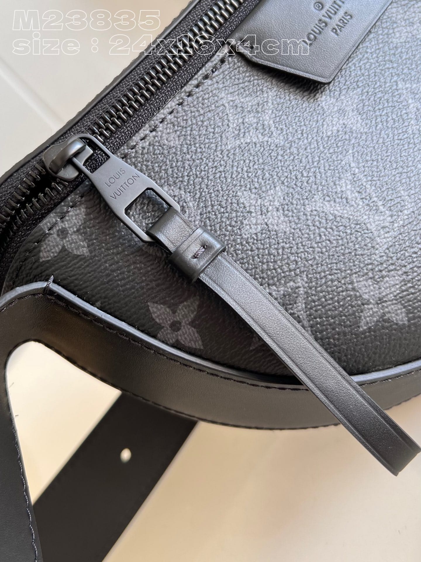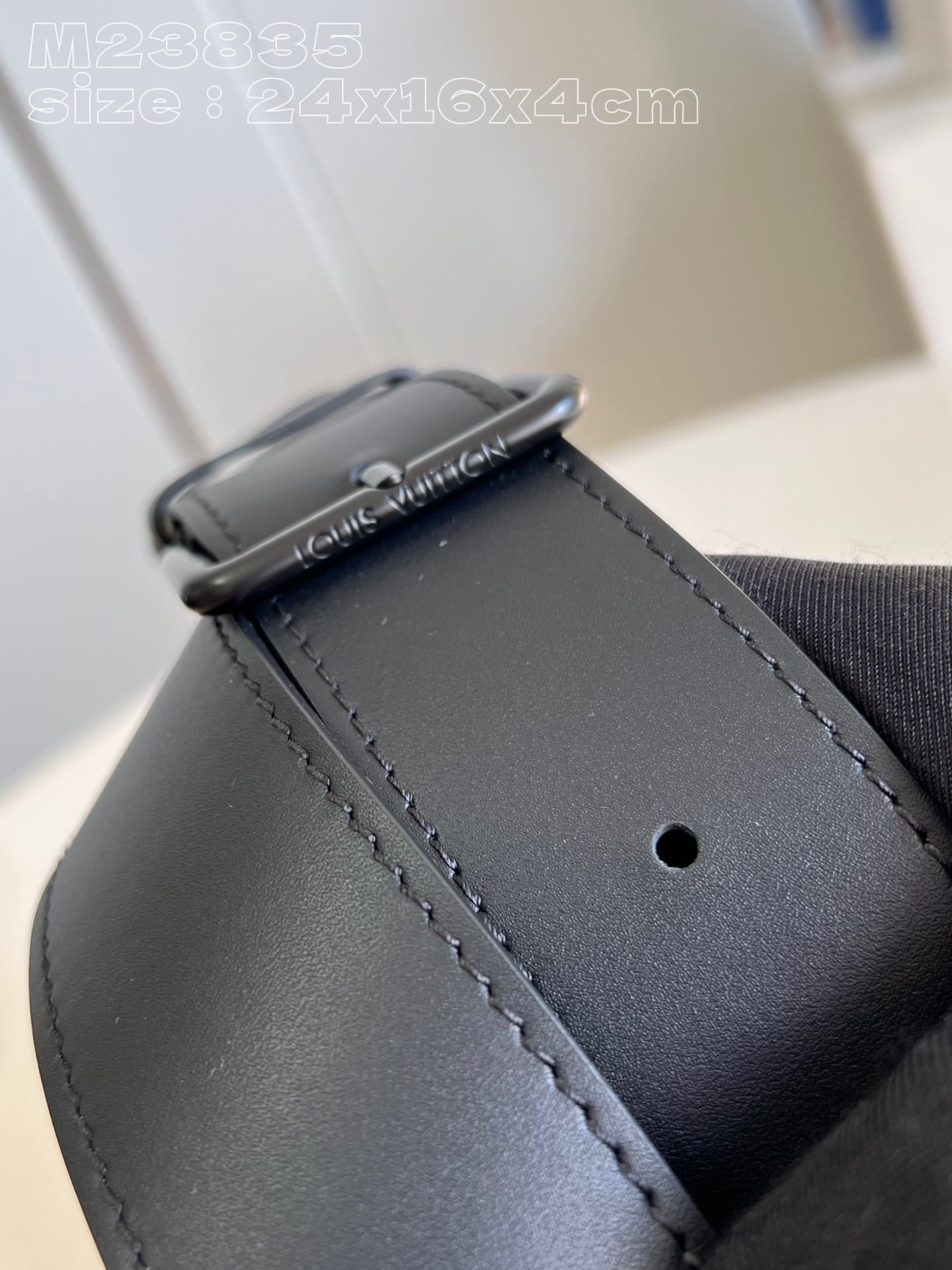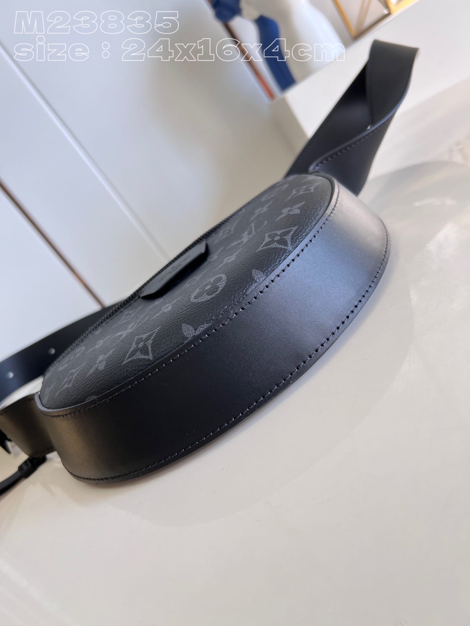 【独家实拍 M23835黑花 】本款 LV Moon Crossbody 手袋以 Monogram Eclipse 涂层帆布搭配皮革饰边和肩带,考究俊逸气息不言而喻。半月形轮廓方便前后斜挎,可轻松收纳手机、小号钱夹和耳机。24.5 x 16 x 4.5厘米 (长度 x 高 x 宽)