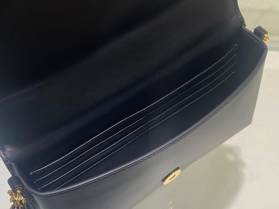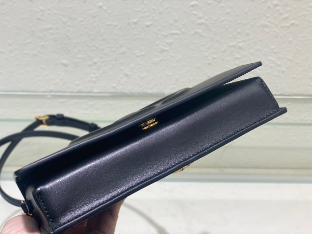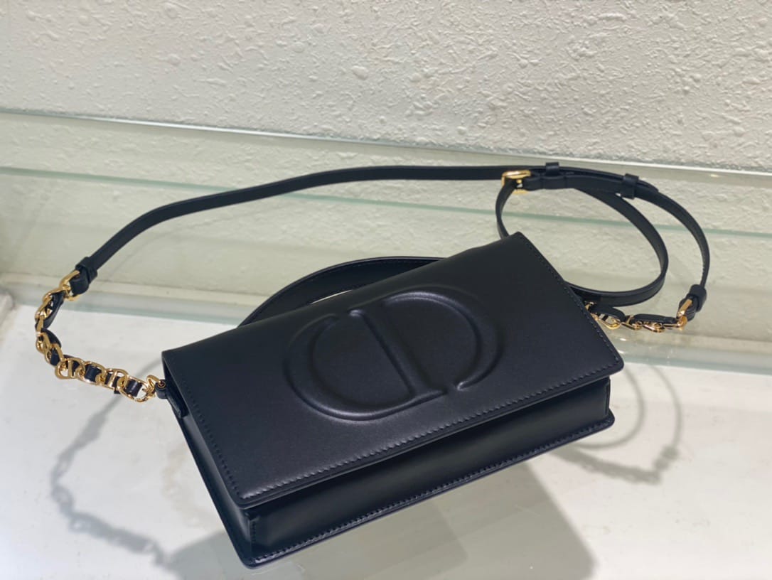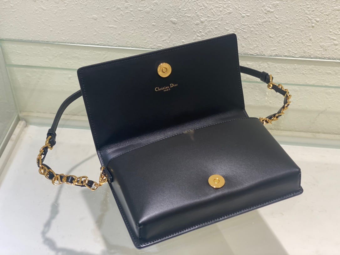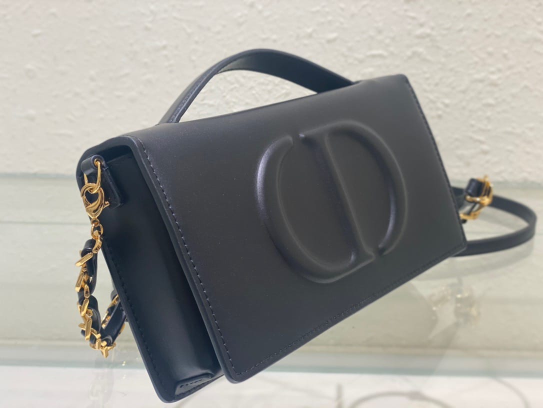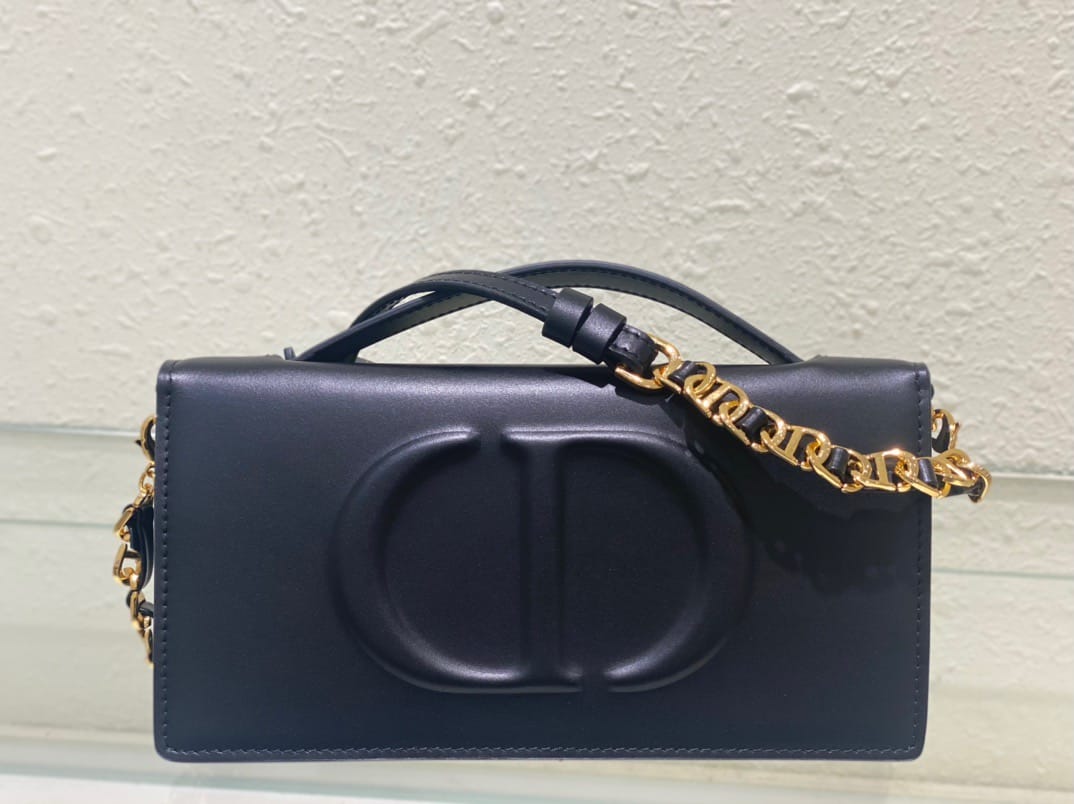 这款 CD Signature 迷你链条手袋是二零二三秋冬成衣系列新品,由 Maria Grazia Chiuri 精心设计,融合实用设计与 Dior 的摩登精神。采用黑色牛皮革精心制作,正面饰以别具一格的 CD 标志,彰显 Dior 的精湛工艺。精巧实用,可收纳各种日常用品,是日常和晚装的理想良伴。搭配顶部手柄,以及点缀以可调节皮革带的可拆卸链条,可手提或斜挎。