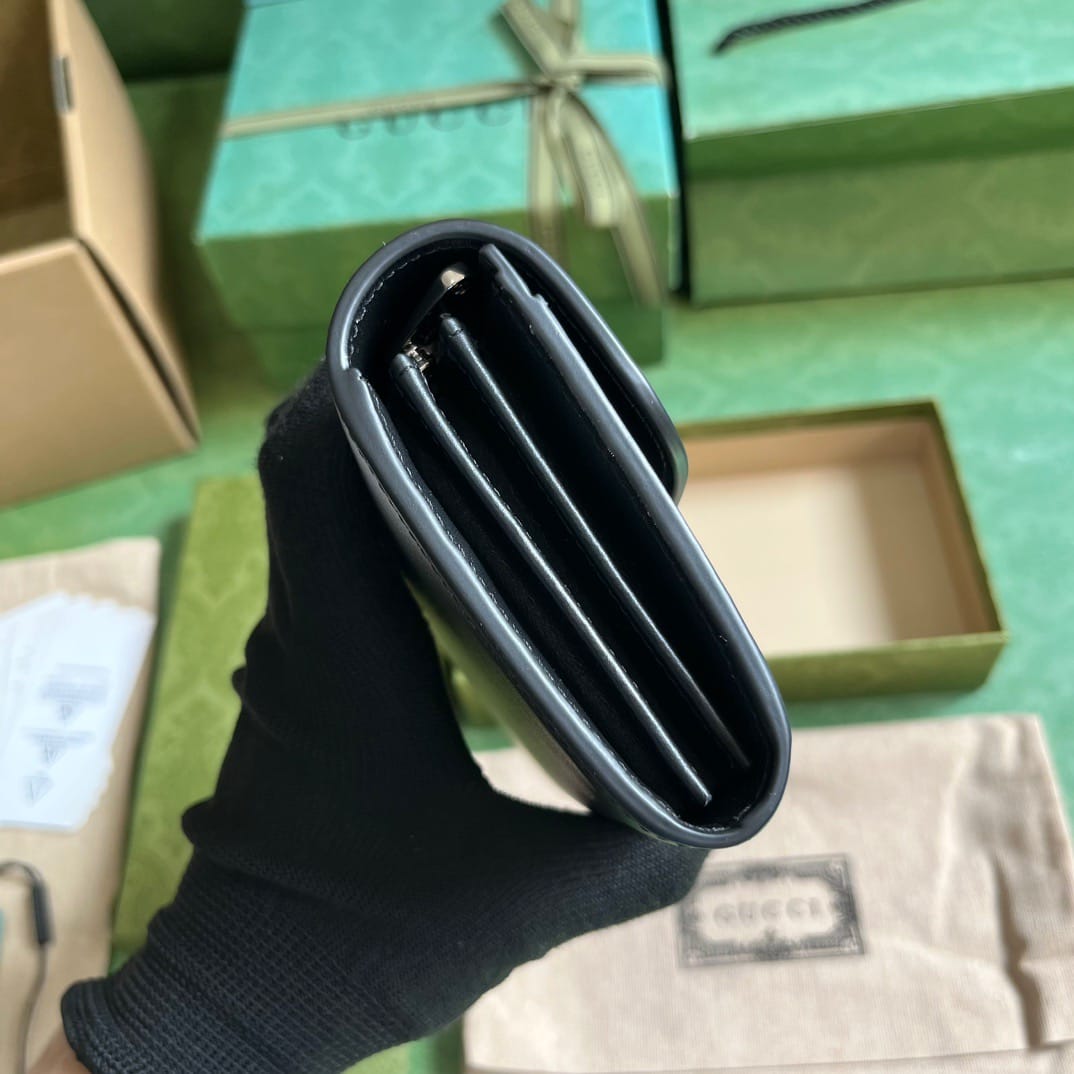 迷你GG系列长款钱包。经典双G元素以迷你尺寸呈现于迷你GG系列各式全新皮具之上,为该知名标识注入一抹含蓄内敛的气韵。优雅迷人的钯金效果标识与纯色皮革及GG Supreme帆布巧妙融为一体。品牌标识为这款黑色皮革长款钱包汇入别样风采。黑色皮革,钯金色调配件,云纹织物衬里双G,内部:十二个卡片隔层、两个钞票隔层、两个独立的内部隔层和一个拉链零钱袋,按扣开合。