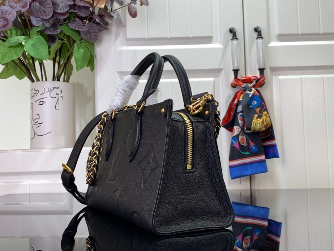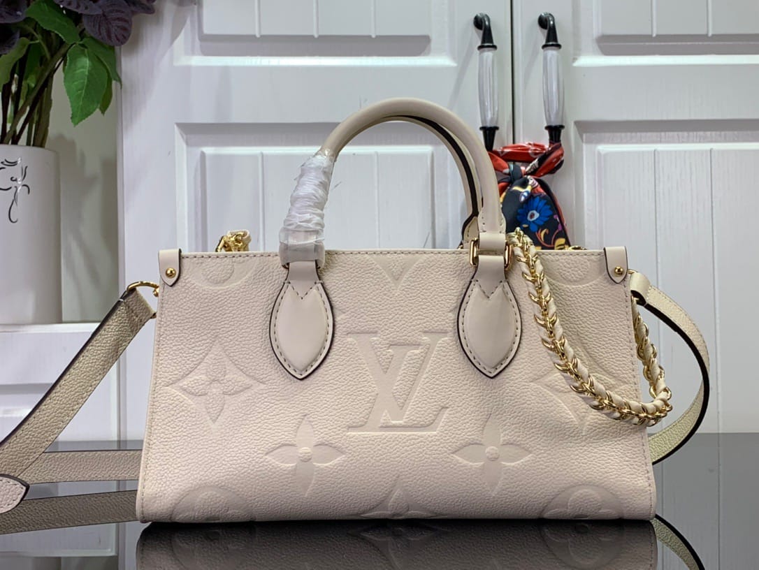 引入 OnTheGo 小号托特包设计,以 Monogram Empreinte 皮革焕新演绎 East West 的充裕构型。Giant Monogram 压印于皮革包身,齐整内层可收纳日常用品。顶部手柄和可拆卸皮革链条肩带实现多种背携方式。