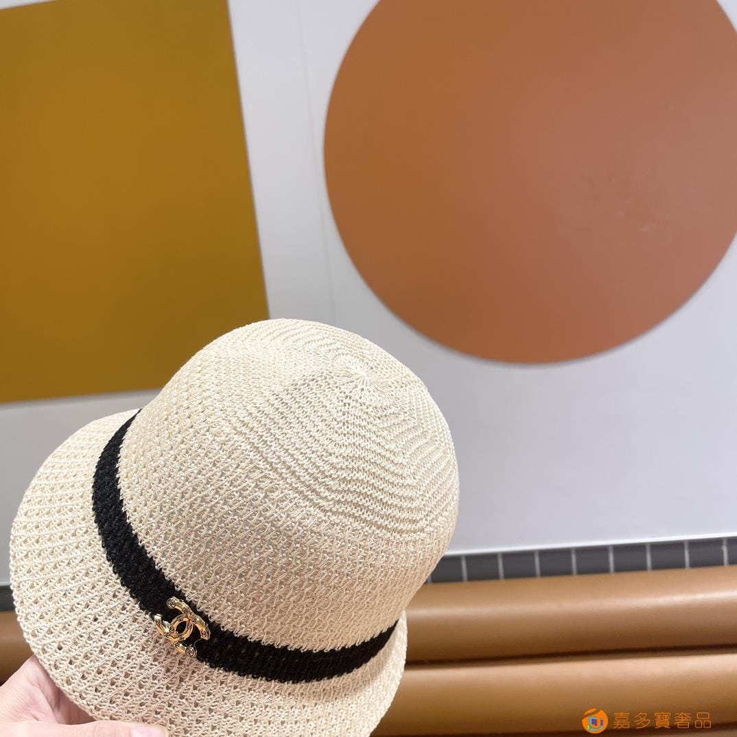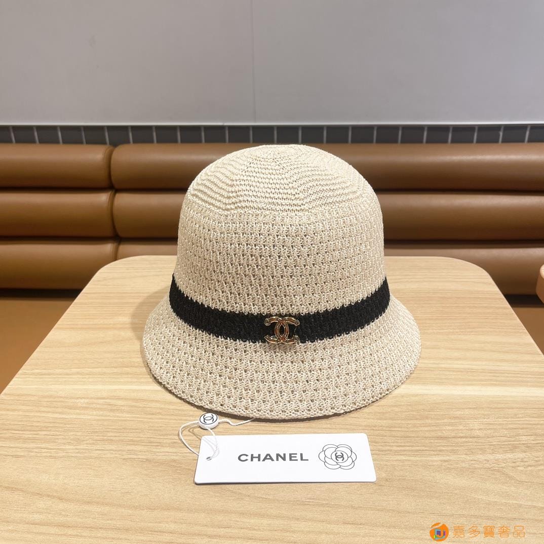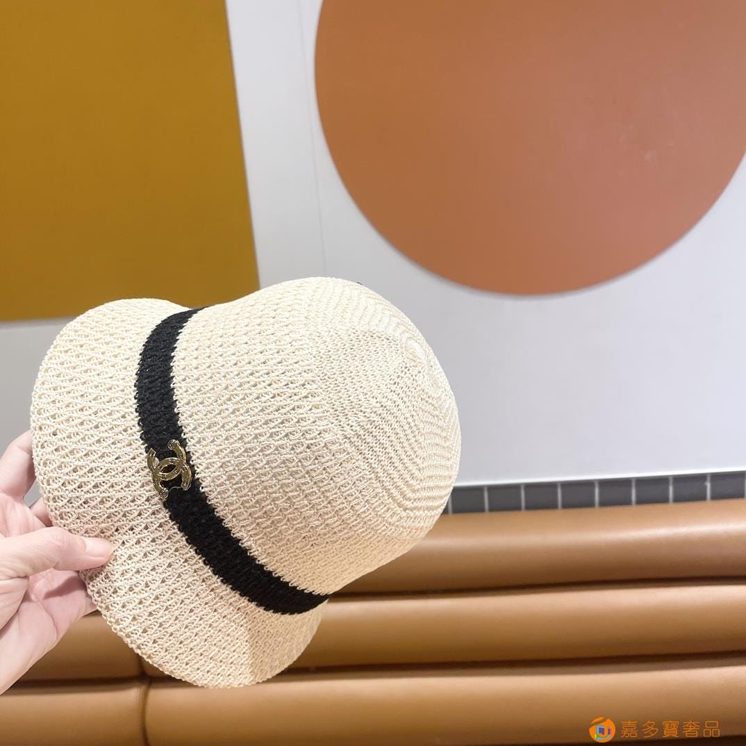 Chanel香奈儿 夏季针织镂空透气渔夫帽子女字母百搭休闲遮阳防晒帽 薄款水桶盆帽