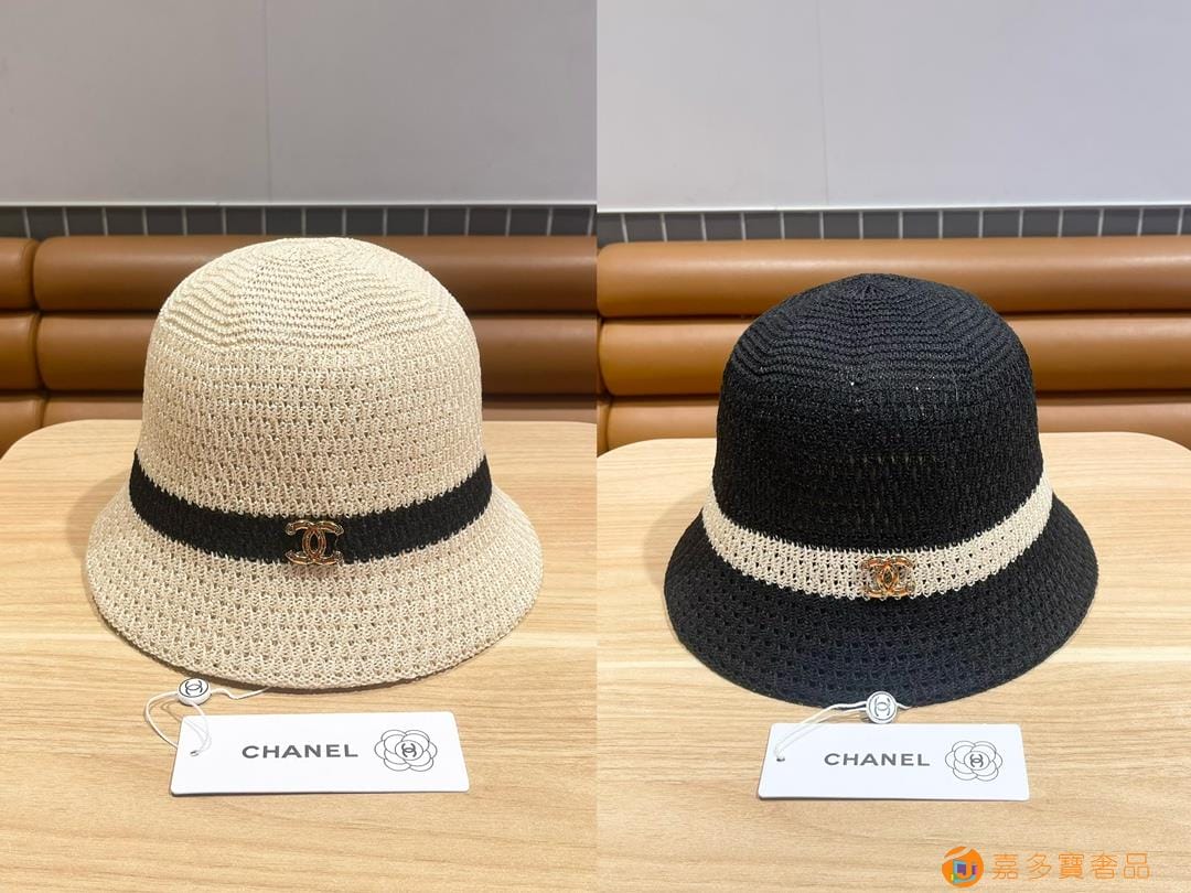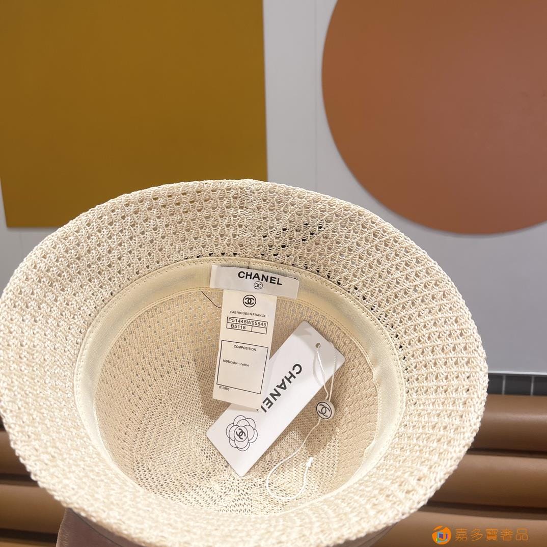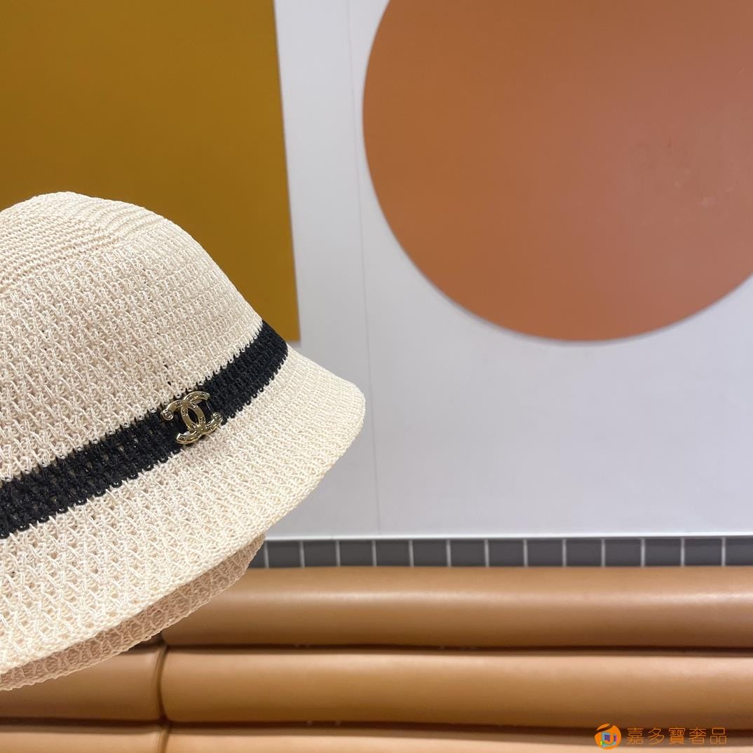 Chanel香奈儿 夏季针织镂空透气渔夫帽子女字母百搭休闲遮阳防晒帽 薄款水桶盆帽