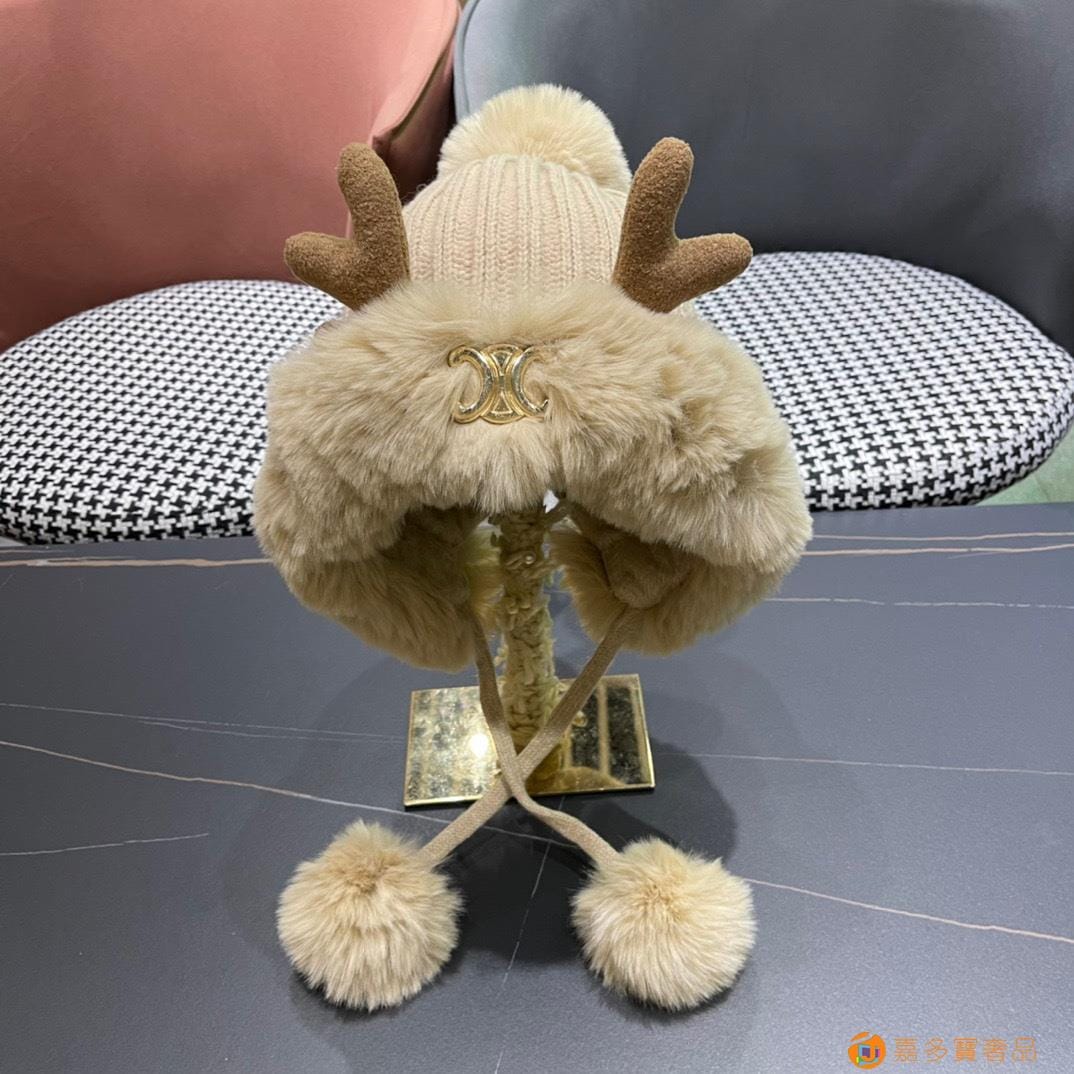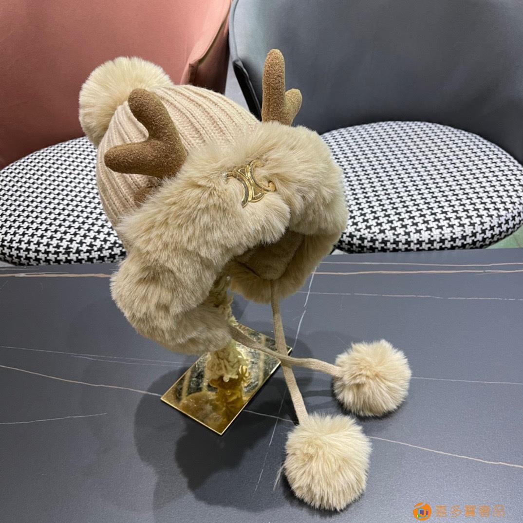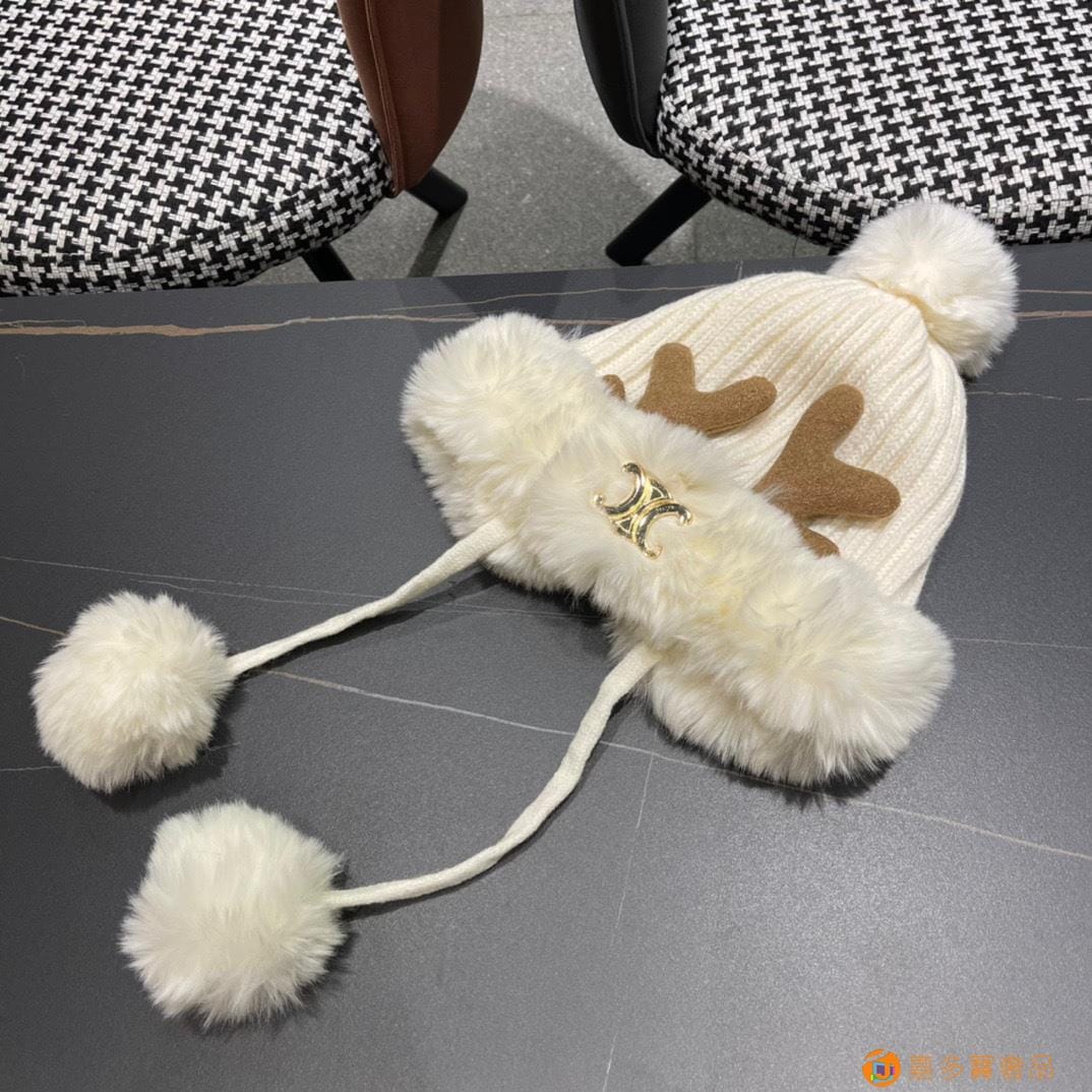 赛琳CELINE新款圣诞鹿角保暖针织帽韩版护耳帽子秋冬季三毛球毛绒加厚毛线帽