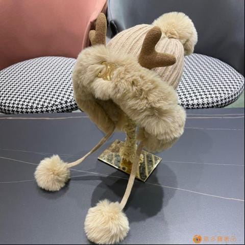 赛琳CELINE新款圣诞鹿角保暖针织帽韩版护耳帽子秋冬季三毛
