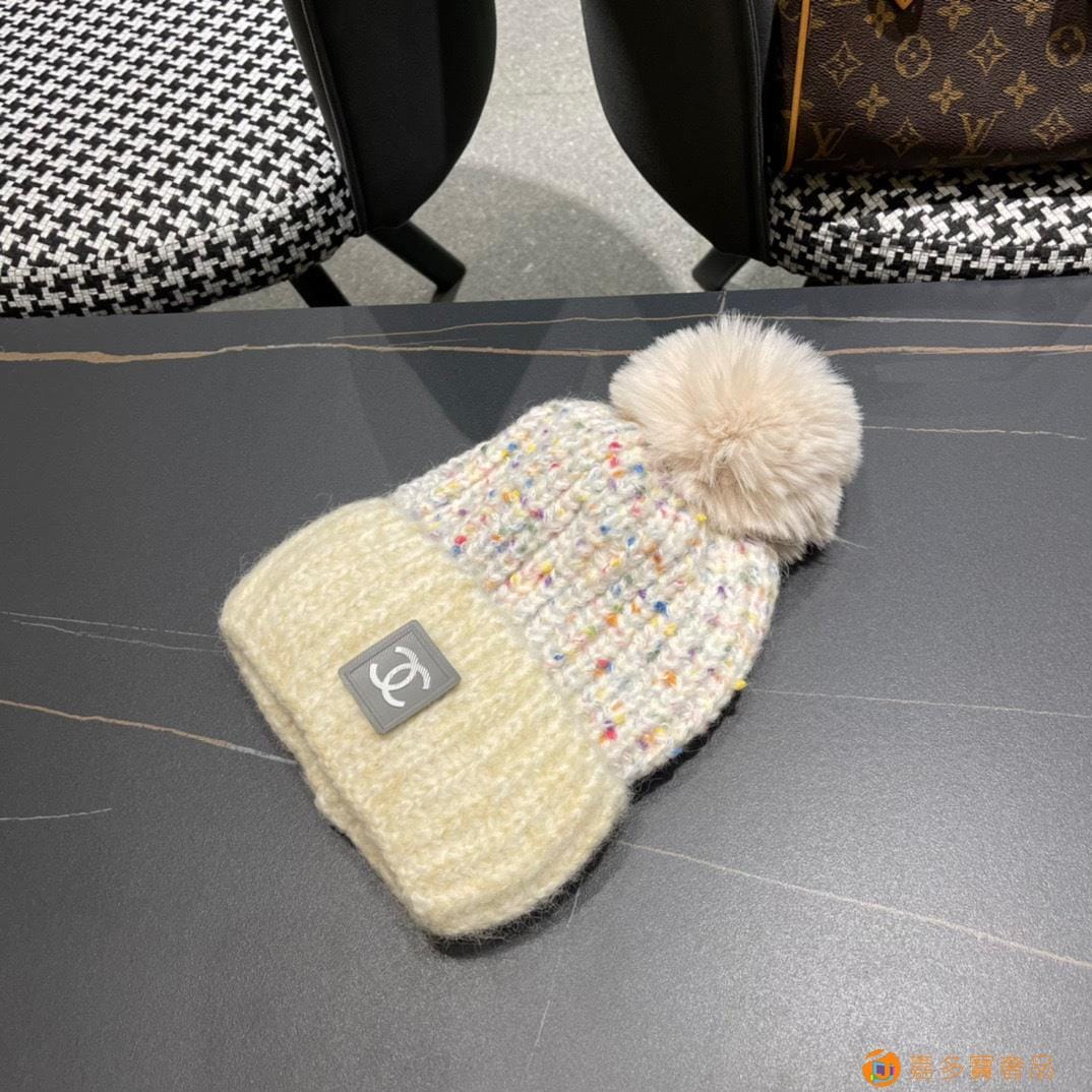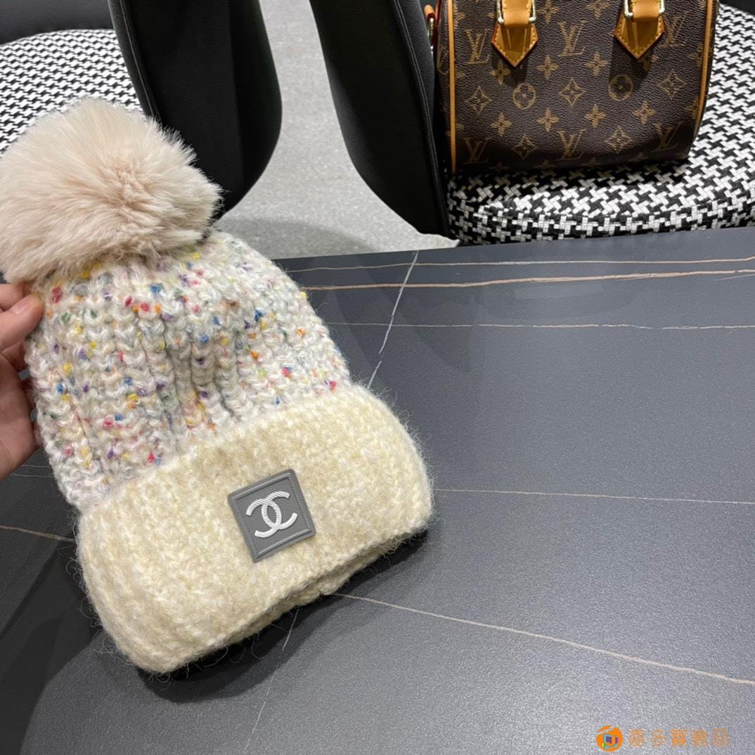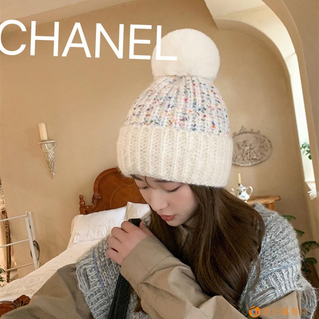 CHANEL香奈儿堆堆毛线帽子女秋冬百搭毛球冷帽日系宽松加厚