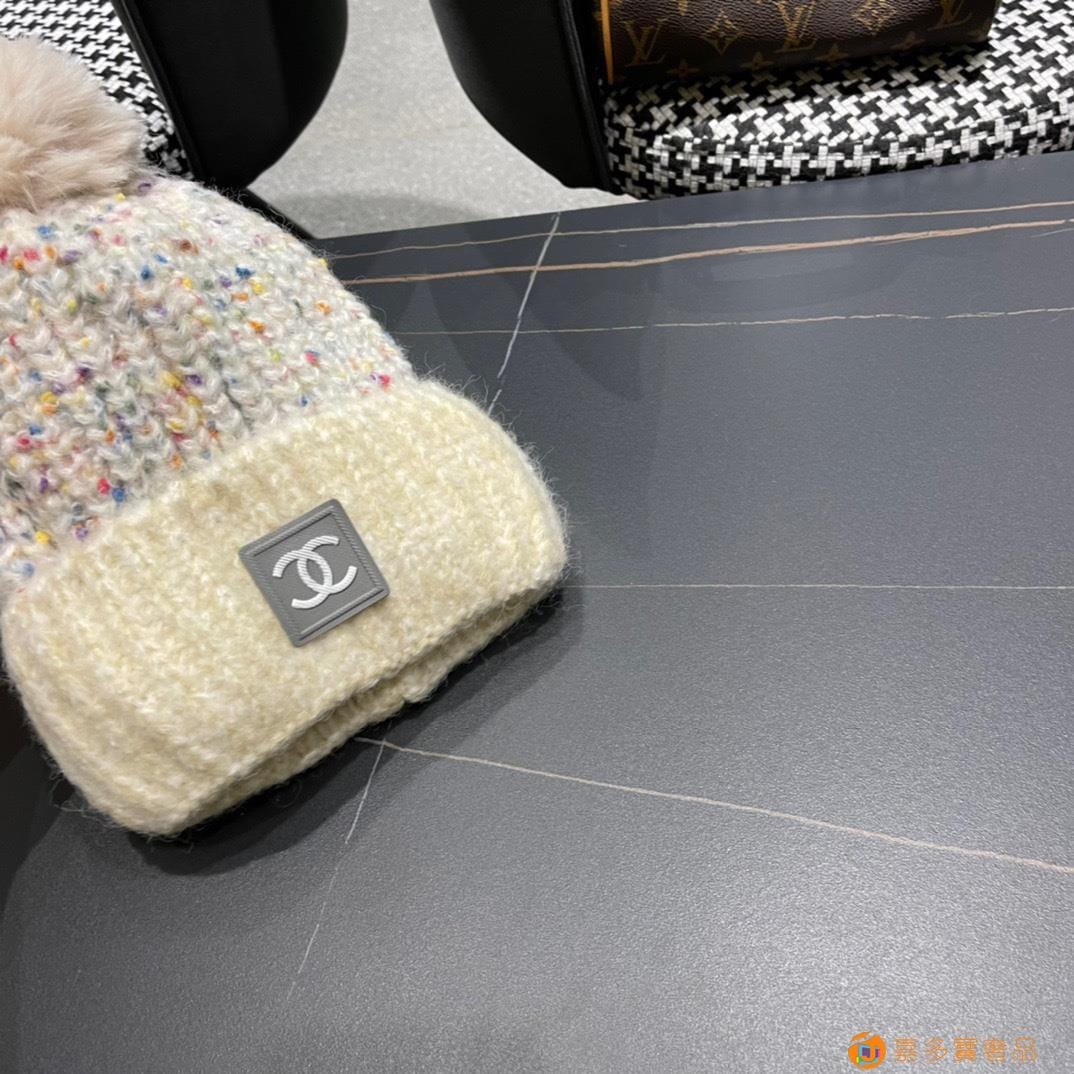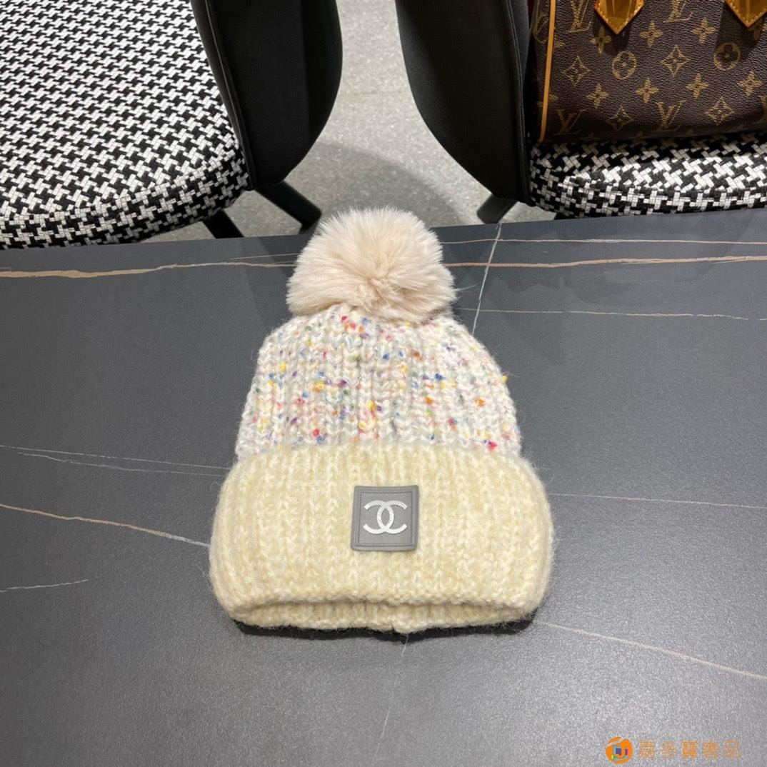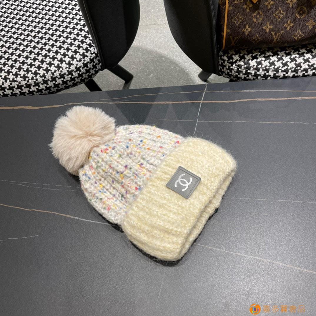 CHANEL香奈儿堆堆毛线帽子女秋冬百搭毛球冷帽日系宽松加厚