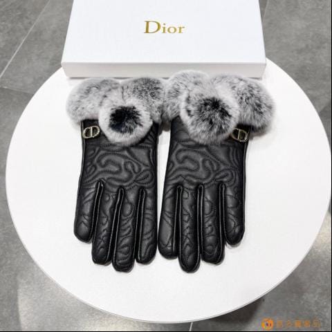 迪奥DIDR新款秋冬懒兔毛CD羊皮刺绣手套?手机触屏,值得对