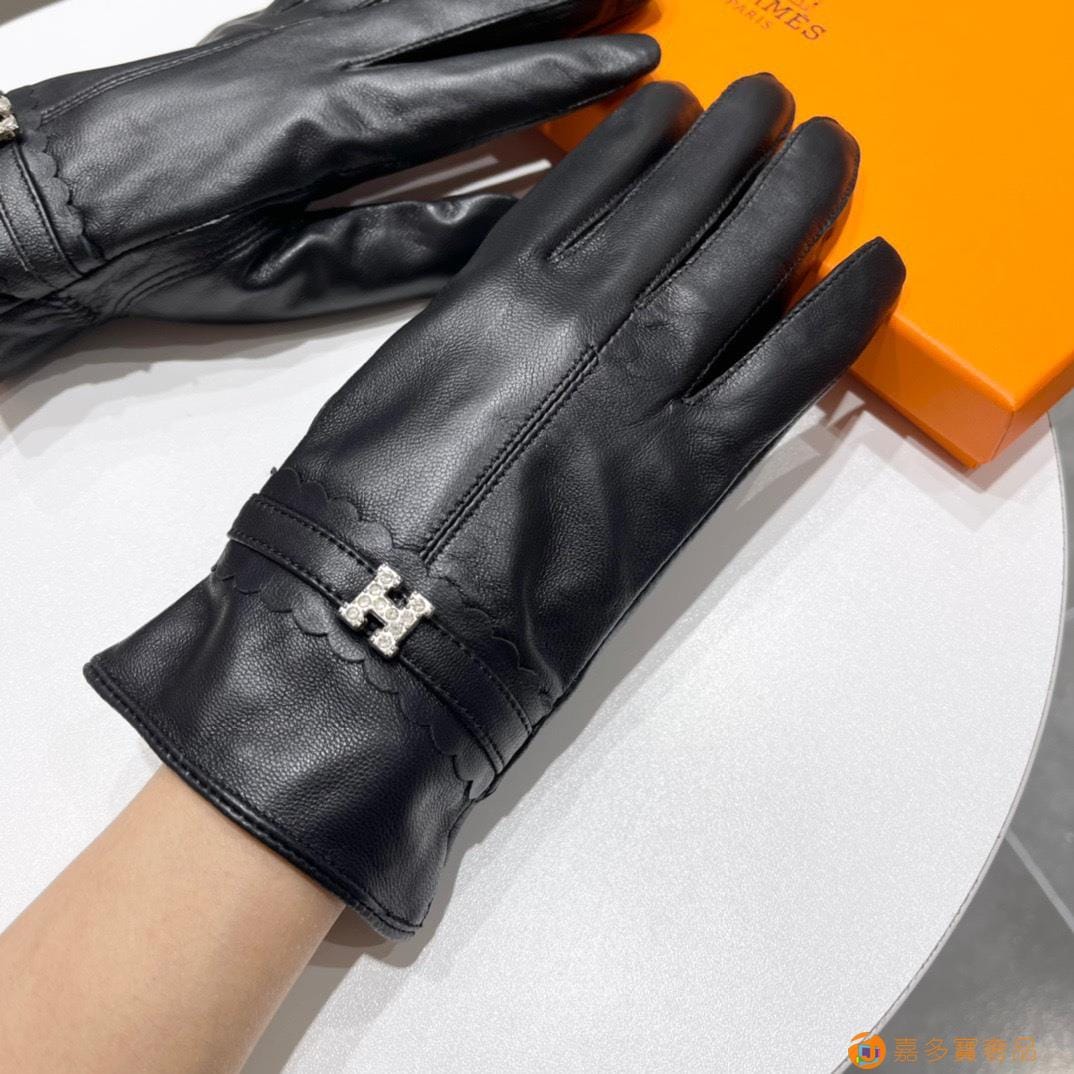 爱马仕女款羊皮手套,时尚手套,秋冬保暖加绒内里,经典简洁?上