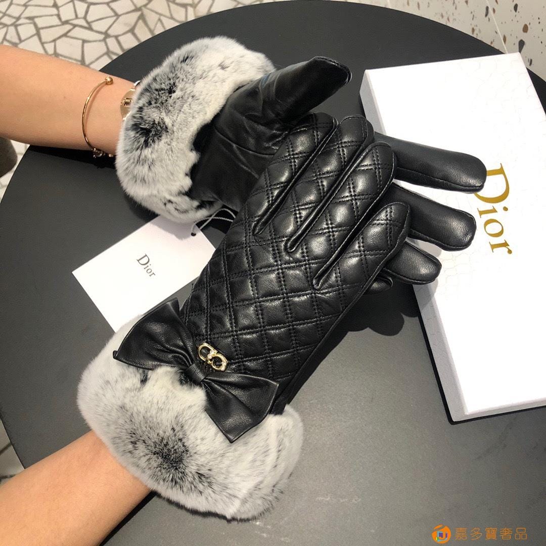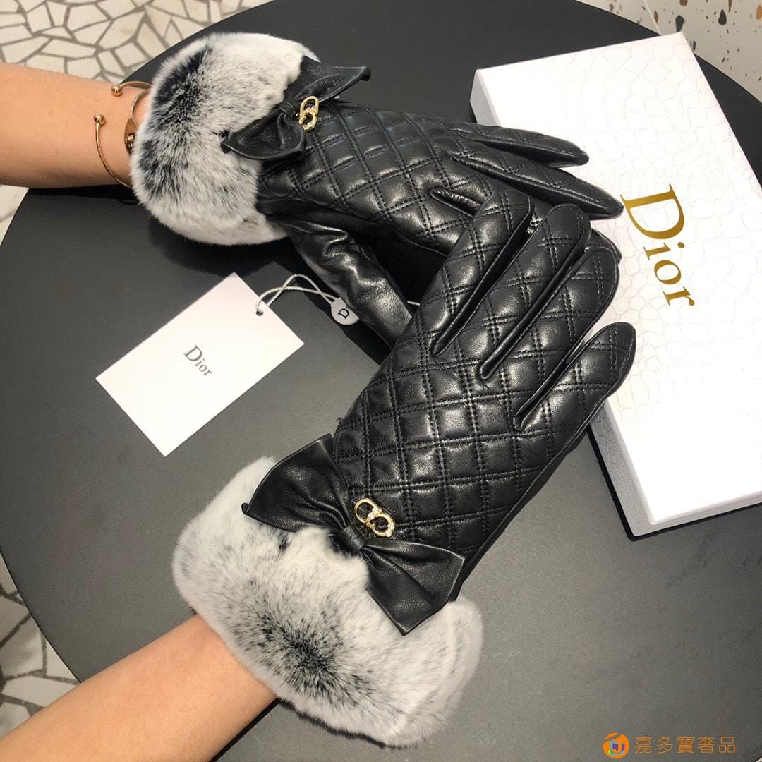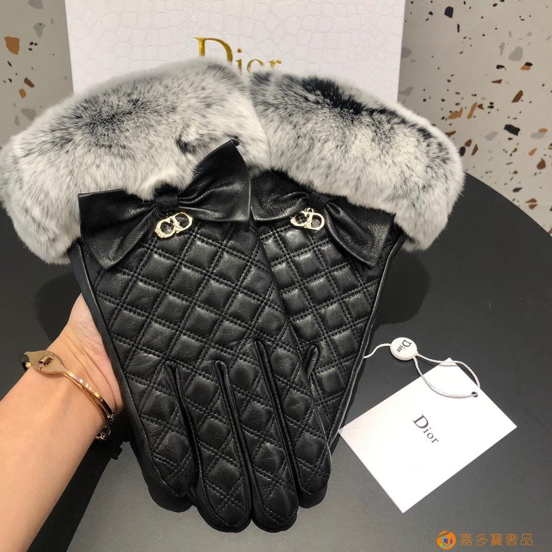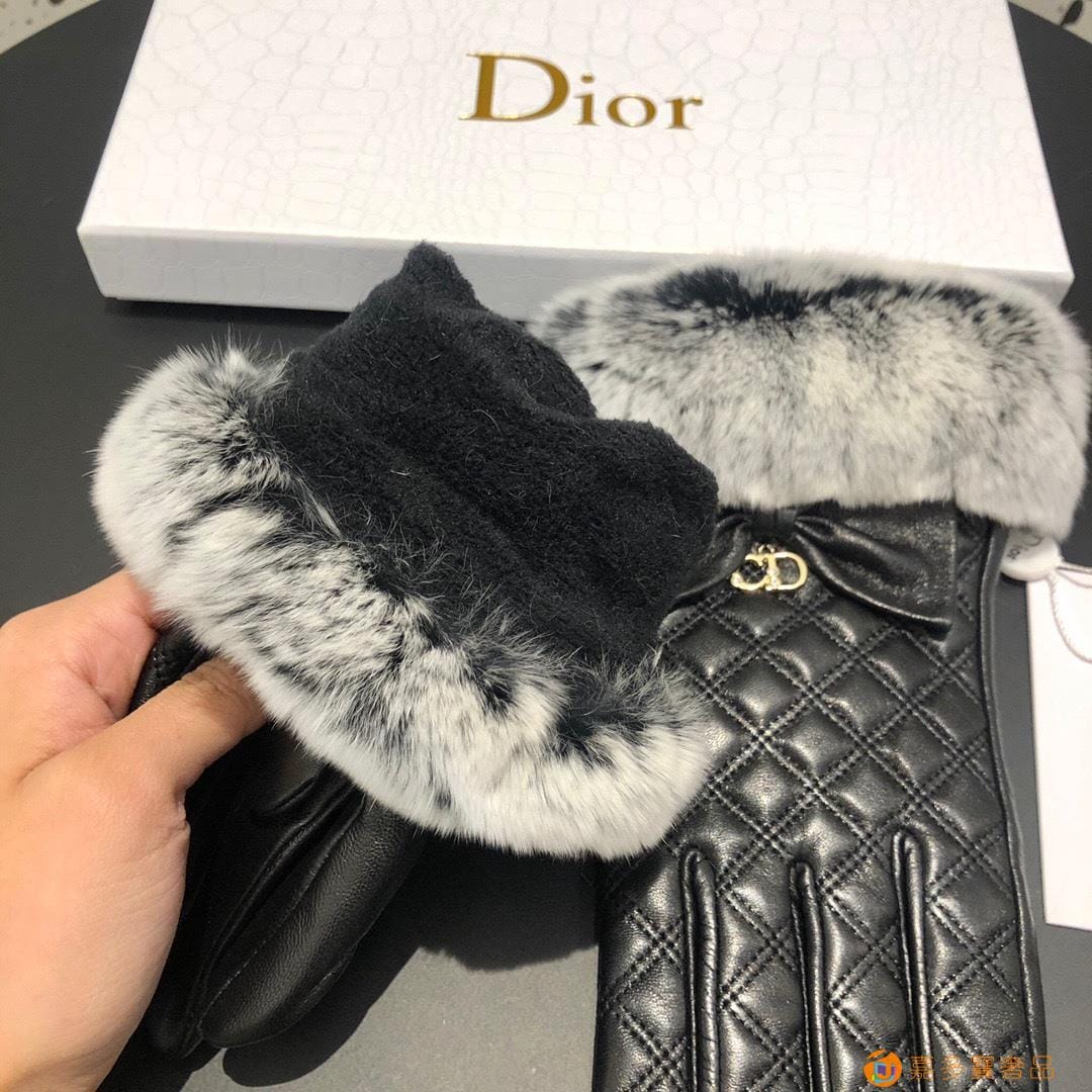 Dior迪奥 CD 秋冬懒兔毛羊皮菱格手套?手机触屏,值得对