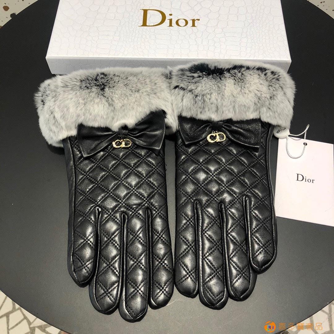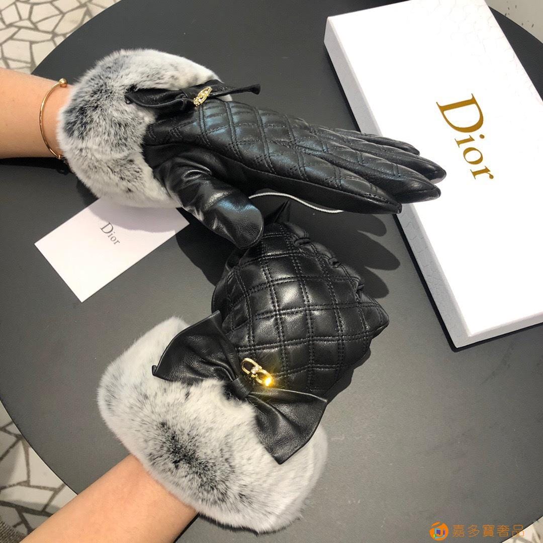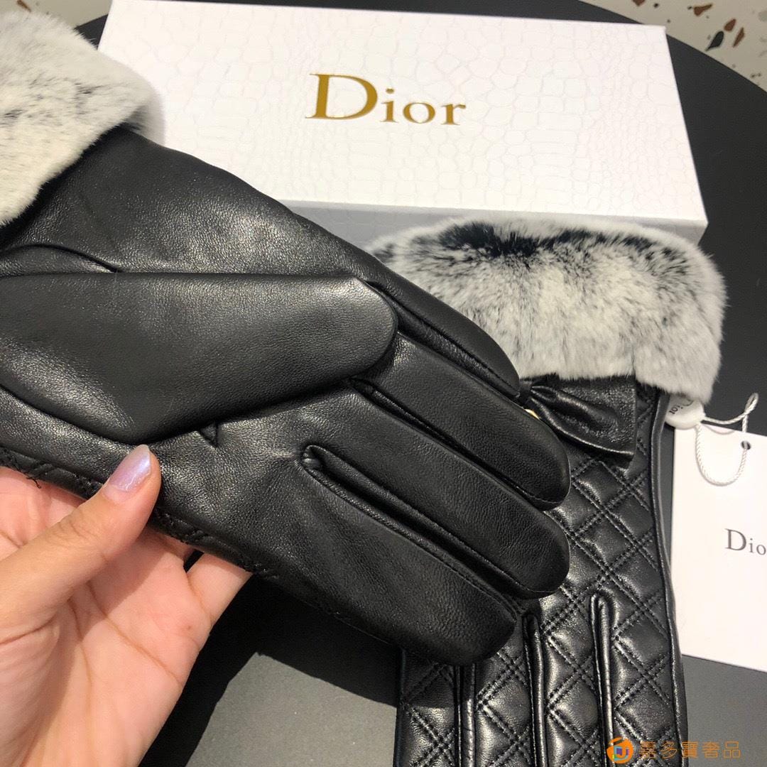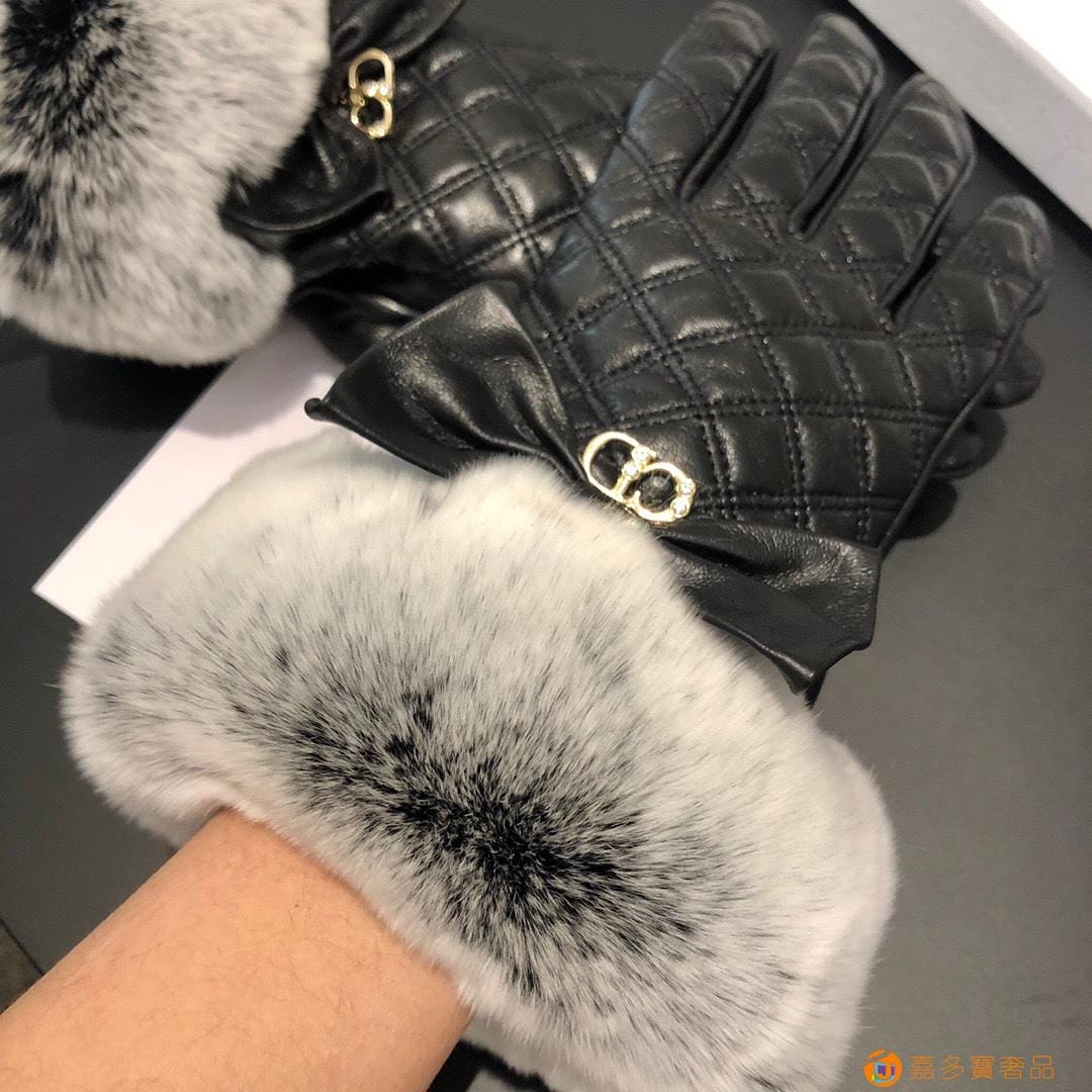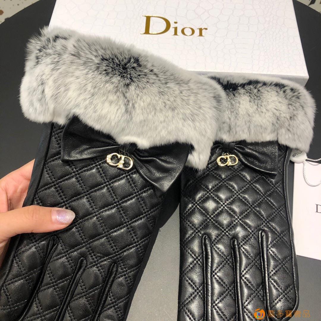 Dior迪奥 CD 秋冬懒兔毛羊皮菱格手套?手机触屏,值得对