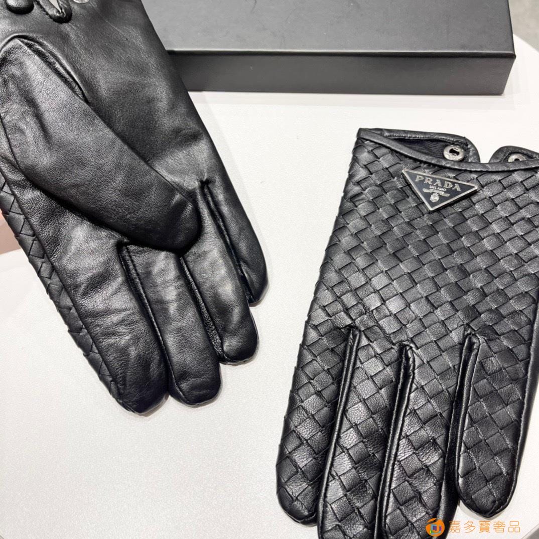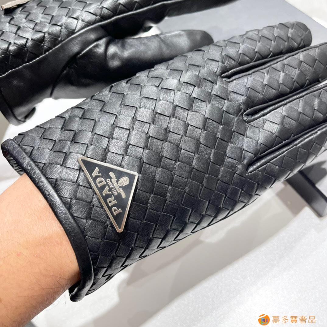 普拉达新款编织男士真皮手套,采用埃塞俄比亚进口触屏羊皮,手背