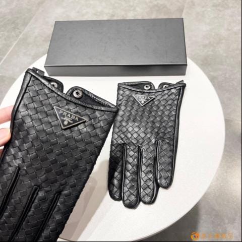 普拉达新款编织男士真皮手套,采用埃塞俄比亚进口触屏羊皮,手背