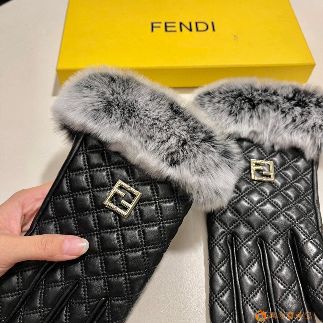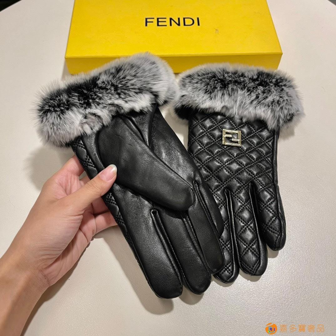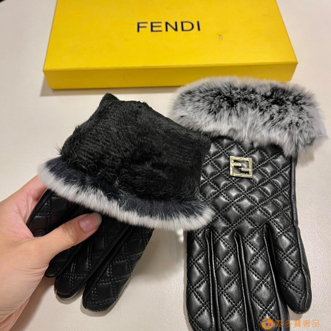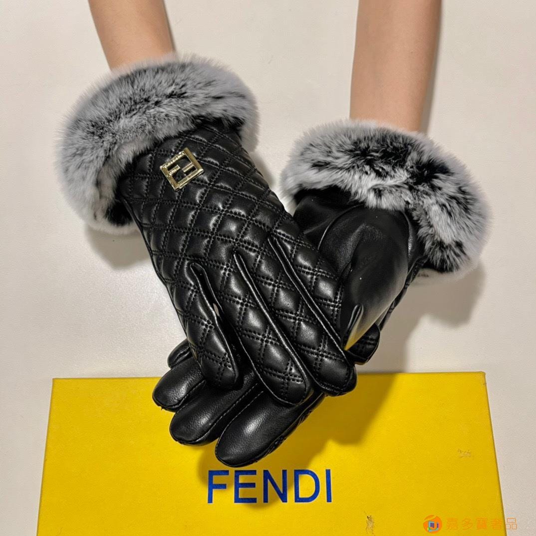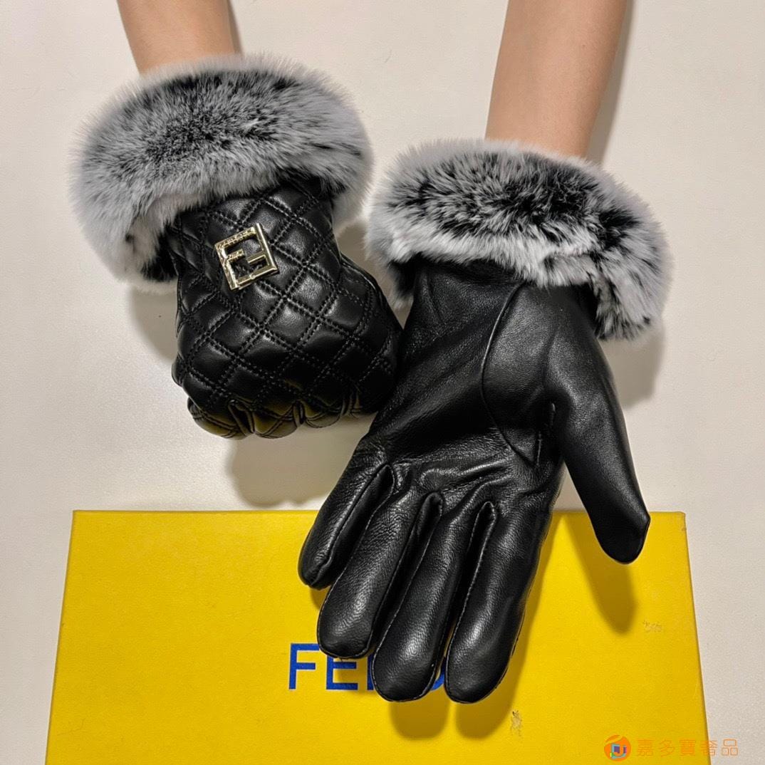 。配包装 芬迪FENDI?秋冬懒兔毛羊皮手套?手机触屏,值得