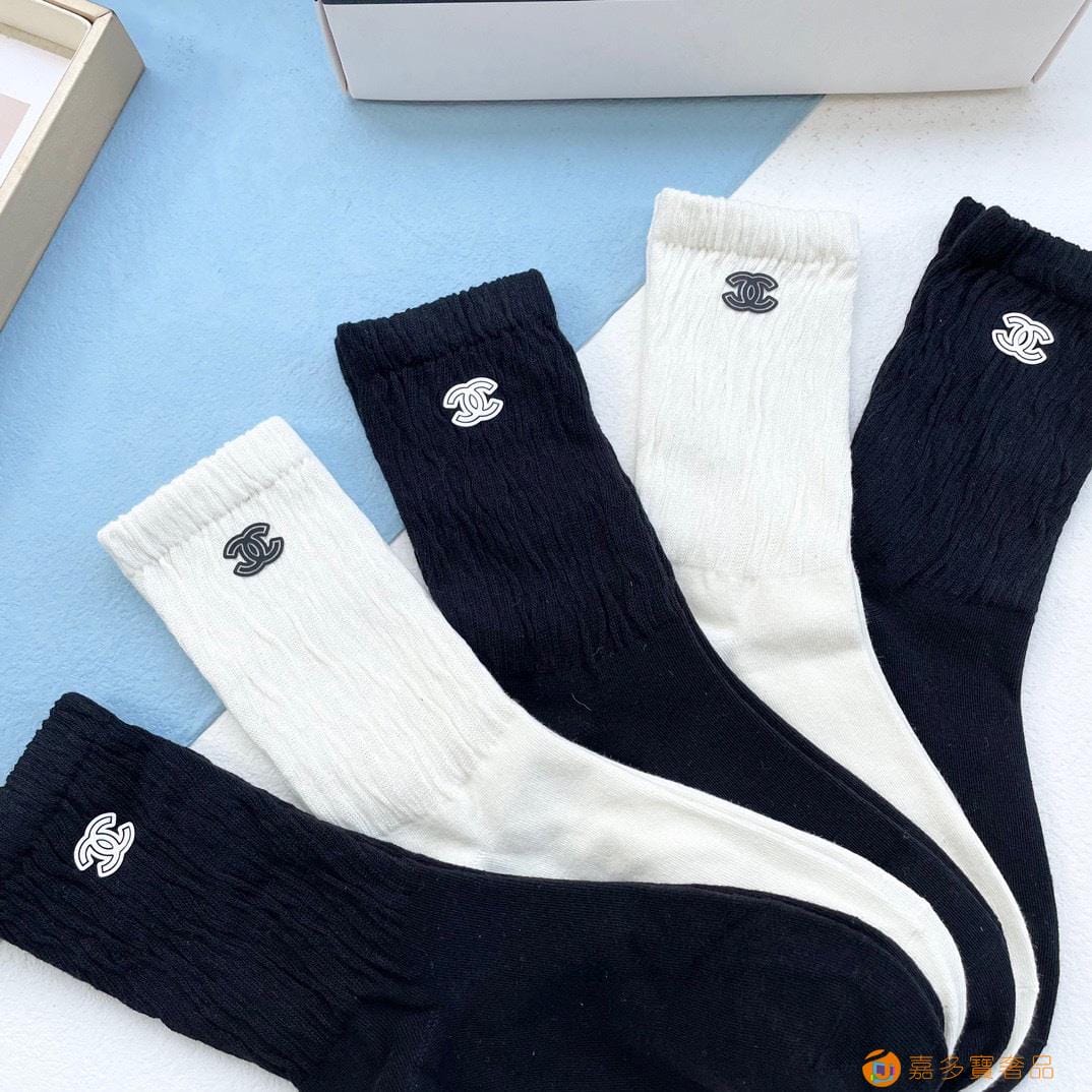 配包装【一盒五双】CHANEL · 香奈儿??高品质?超级爆款网红袜子??小香家官网同步饰品字母中筒袜,ins明星网红推荐??火爆至极?纯棉材质,轻薄柔软透气,四季通用,欧美大牌街头必备?