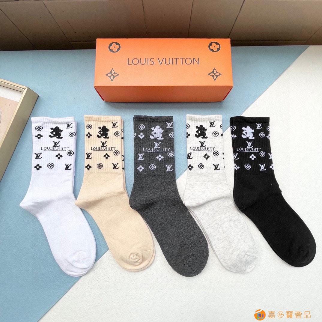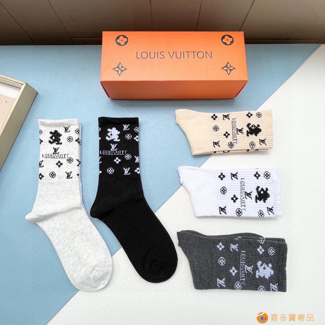 配包装【一盒五双】?LV 路易威登 爆款 长筒袜?高版本 ~好看到爆炸 欧美大牌长筒袜??潮人必不能少的专柜代购品质 袜子 ,搭配起来超高逼格 时髦度爆表啊啊啊啊~~推荐推荐推荐~~必入时髦小单品!!